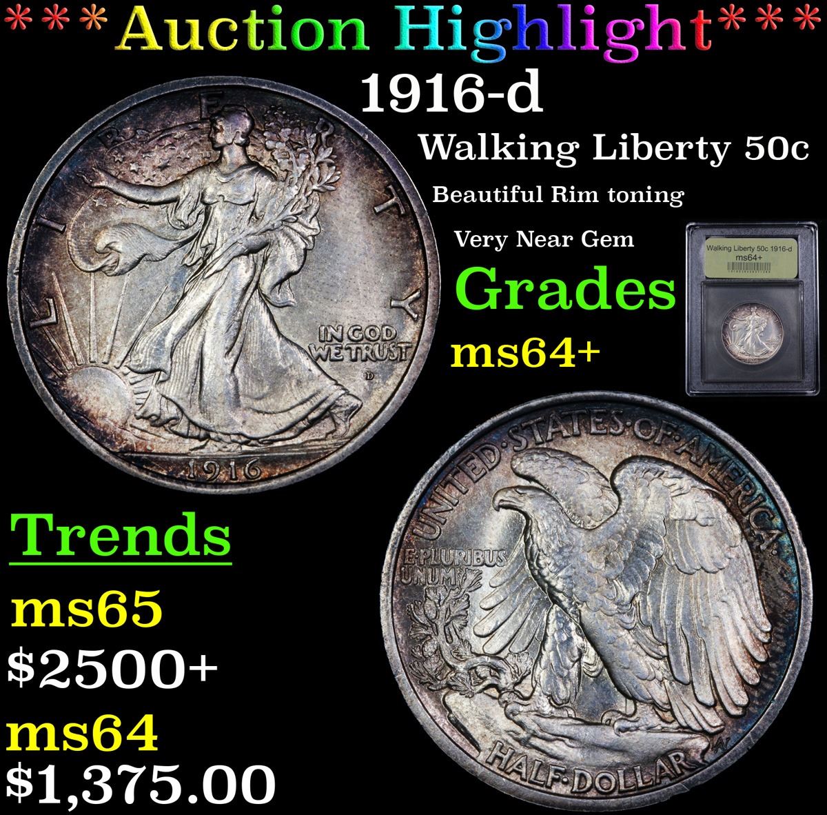 ***Auction Highlight*** 1916-d Walking Liberty Half Dollar 50c Graded Choice+ Unc By USCG. A Corey's Pick, Bid to Win, Don't let it get Away Coin
