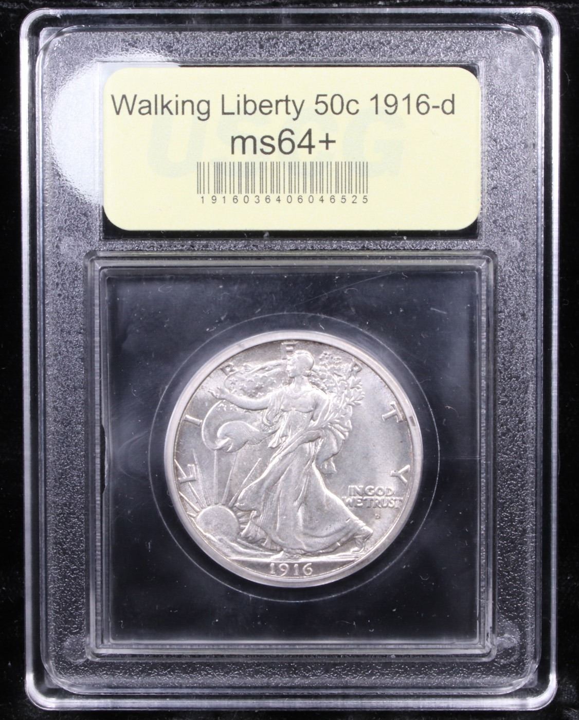***Auction Highlight*** 1916-d Walking Liberty Half Dollar 50c Graded Choice+ Unc By USCG (fc)