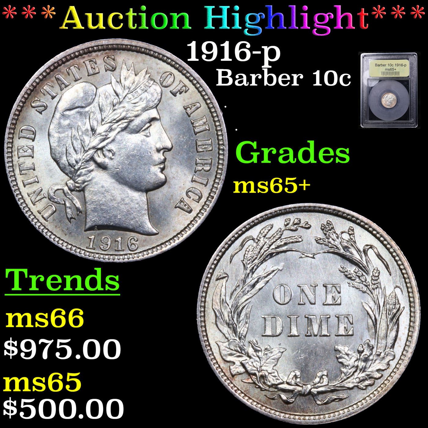***Auction Highlight*** 1916-p Barber Dime 10c Graded GEM+ Unc By USCG. Final year of the Barber Dime pattern.