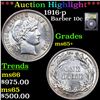 ***Auction Highlight*** 1916-p Barber Dime 10c Graded GEM+ Unc By USCG. Final year of the Barber Dime pattern.