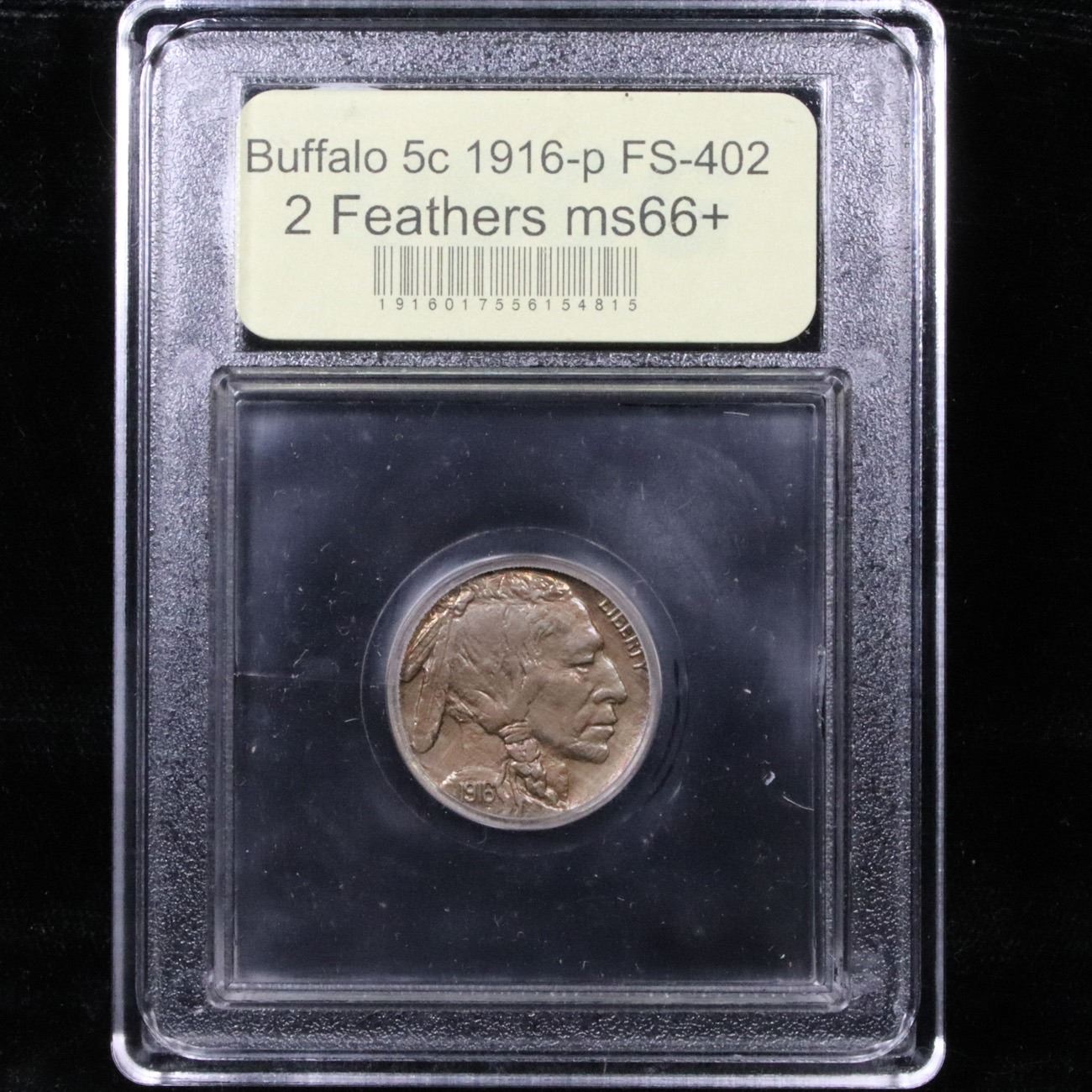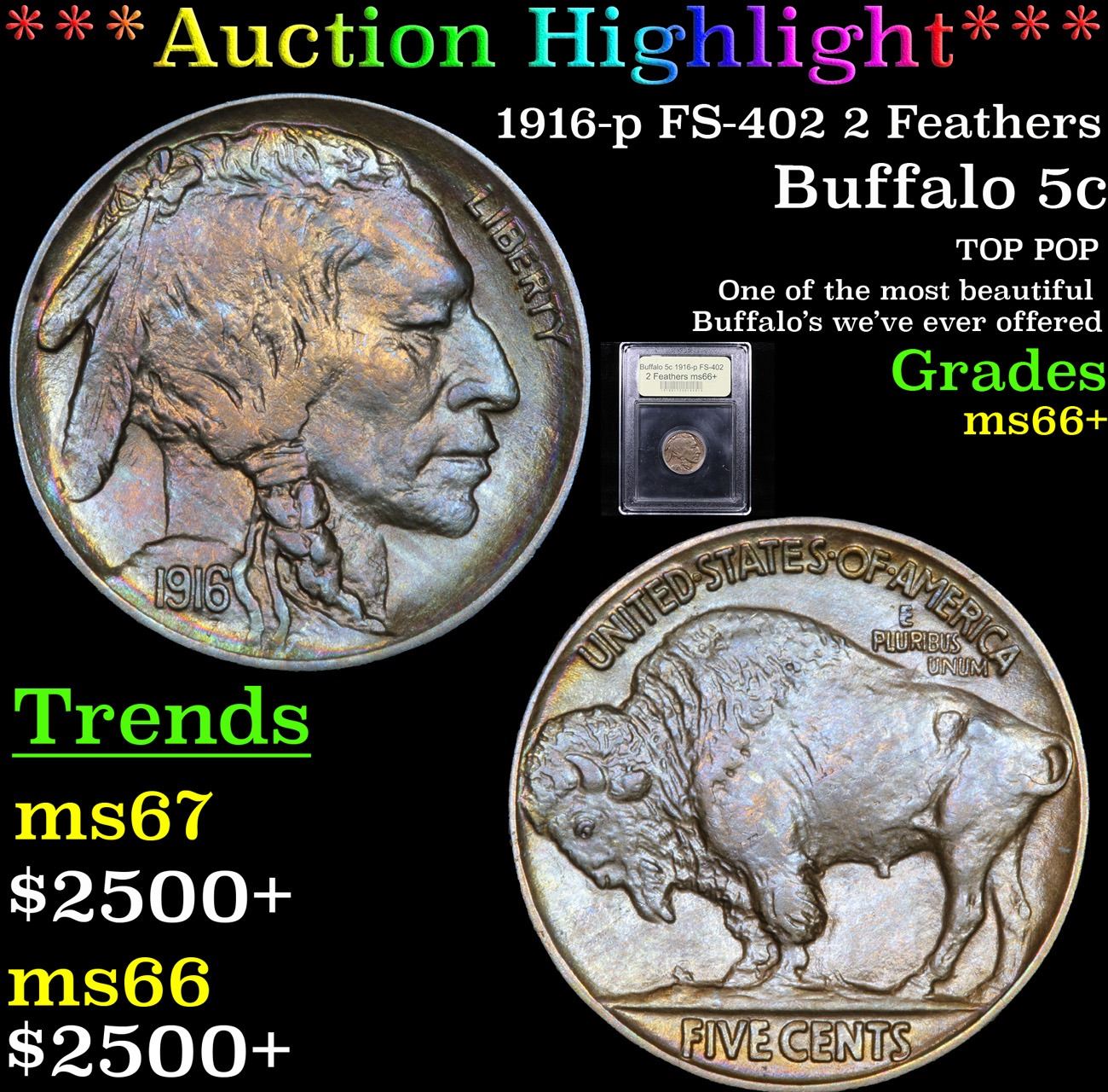 ***Auction Highlight*** 1916-p FS-402 2 Feathers Buffalo Nickel 5c Graded GEM++ Unc By USCG (fc)