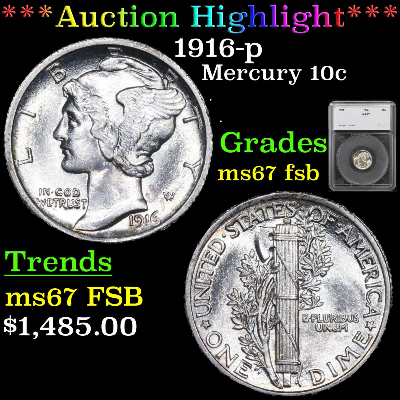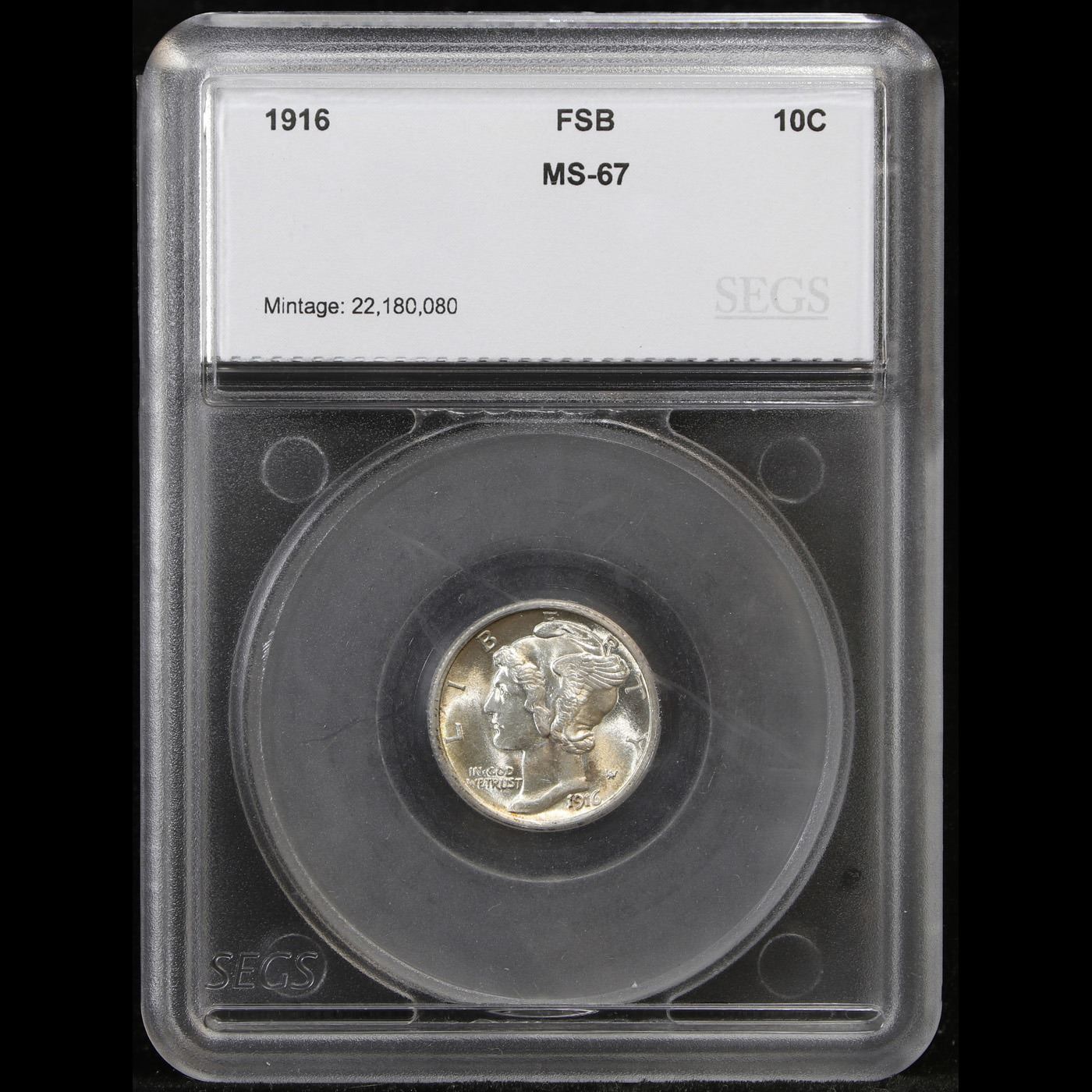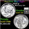 ***Auction Highlight*** 1916-p Mercury Dime 10c Graded ms67 fsb by SEGS.