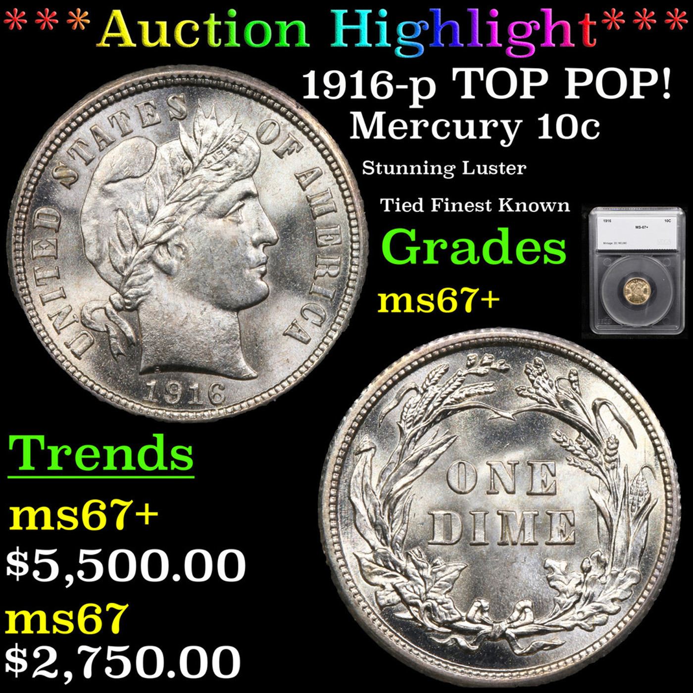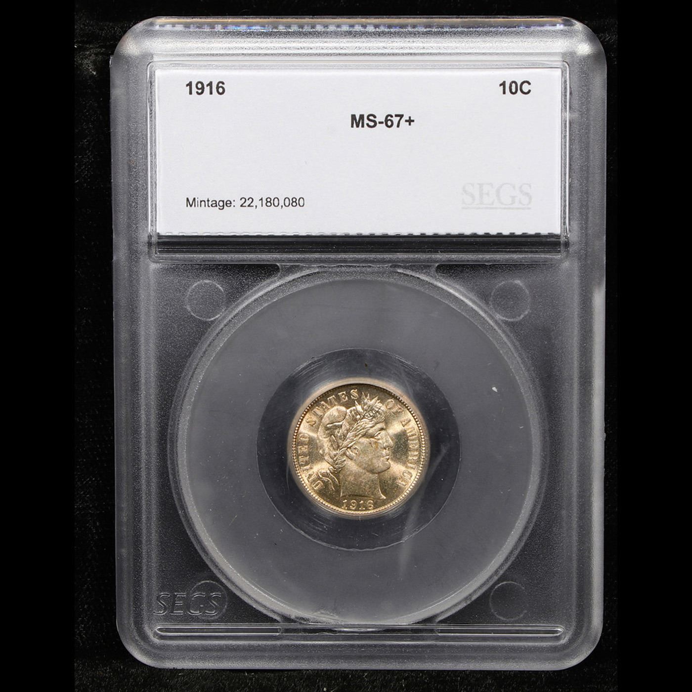 ***Auction Highlight*** 1916-p TOP POP! Mercury Dime 10c Graded ms67+ By SEGS. Final year of the Barber Dime pattern.