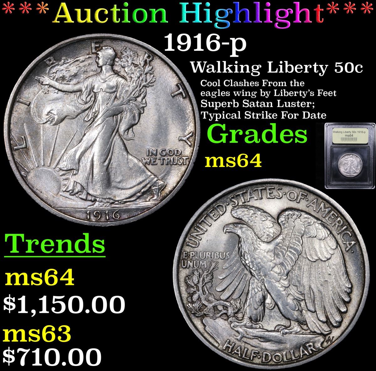 ***Auction Highlight*** 1916-p Walking Liberty Half Dollar 50c Graded Choice Unc By USCG. 0