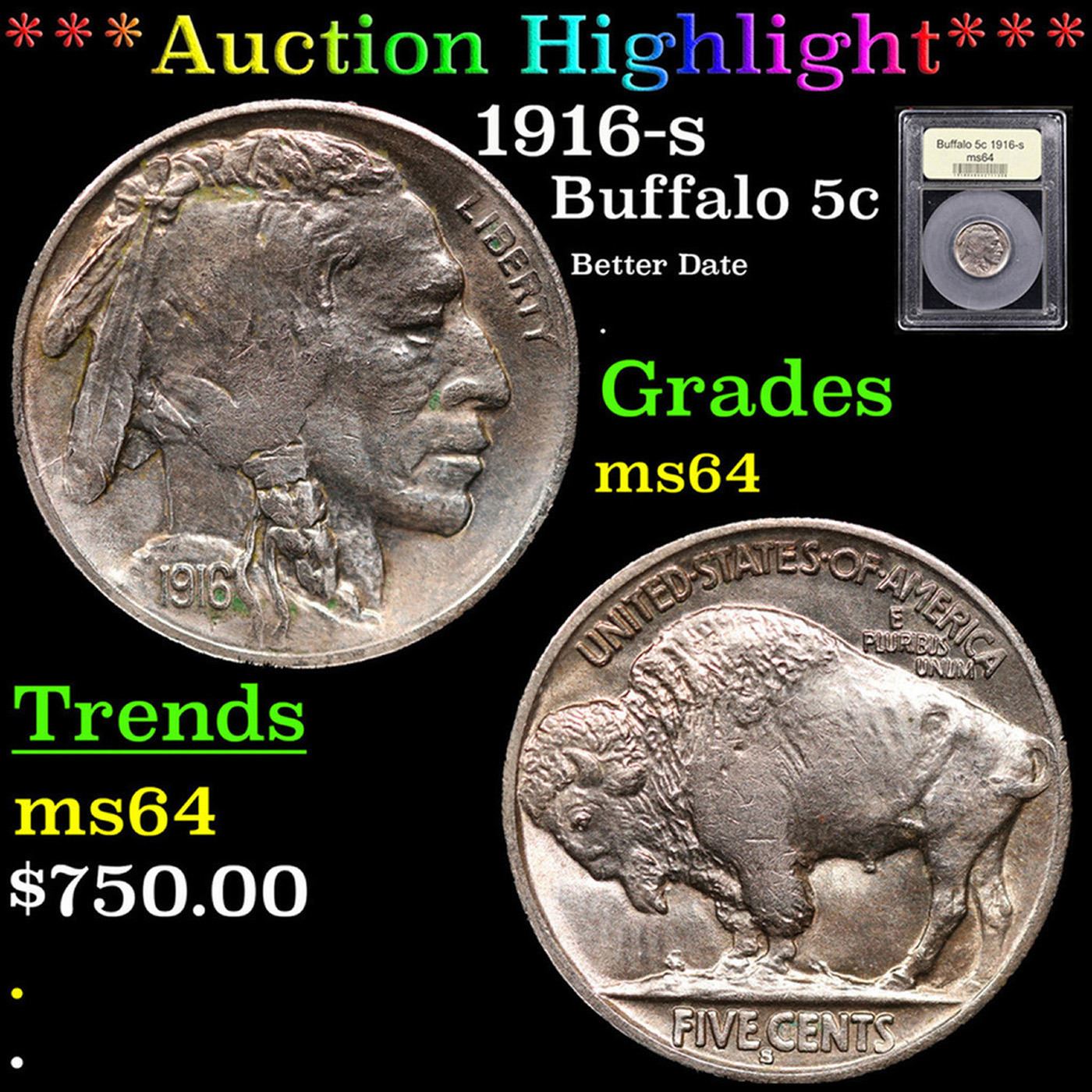 ***Auction Highlight*** 1916-s Buffalo Nickel 5c Graded Choice Unc By USCG. A tough date.