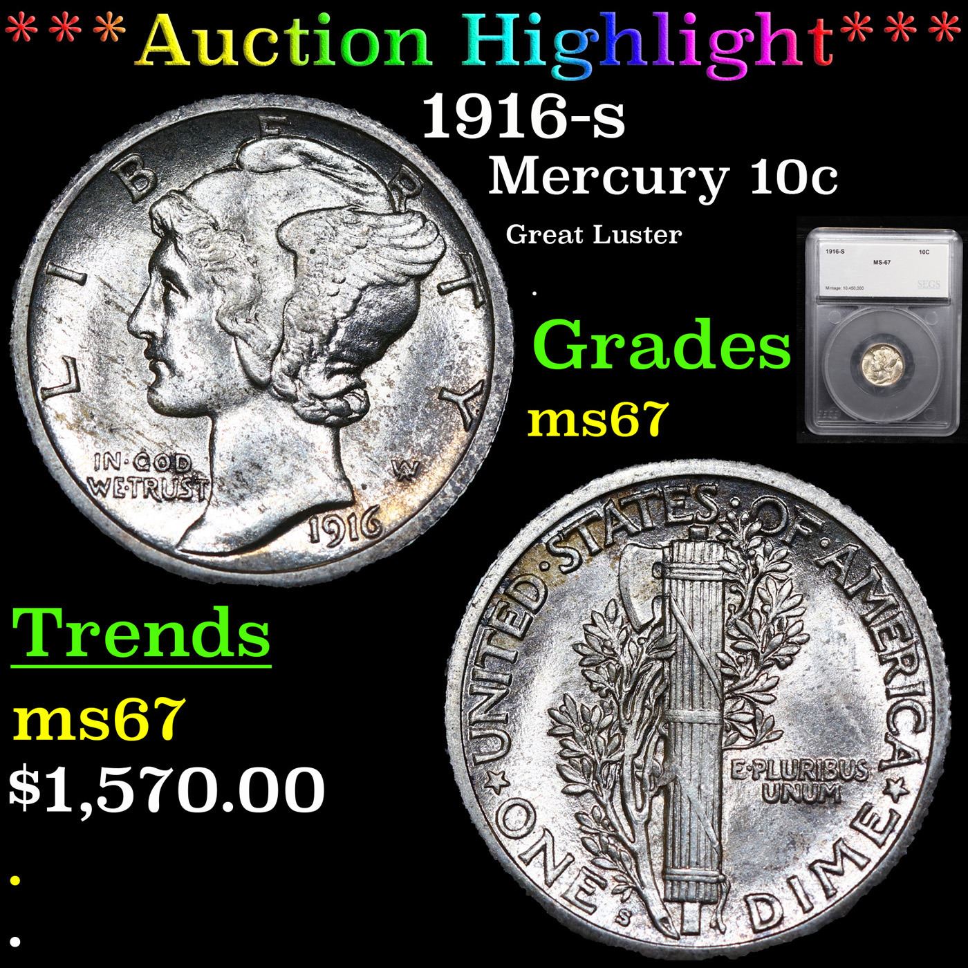 ***Auction Highlight*** 1916-s Mercury Dime 10c Graded ms67 By SEGS.