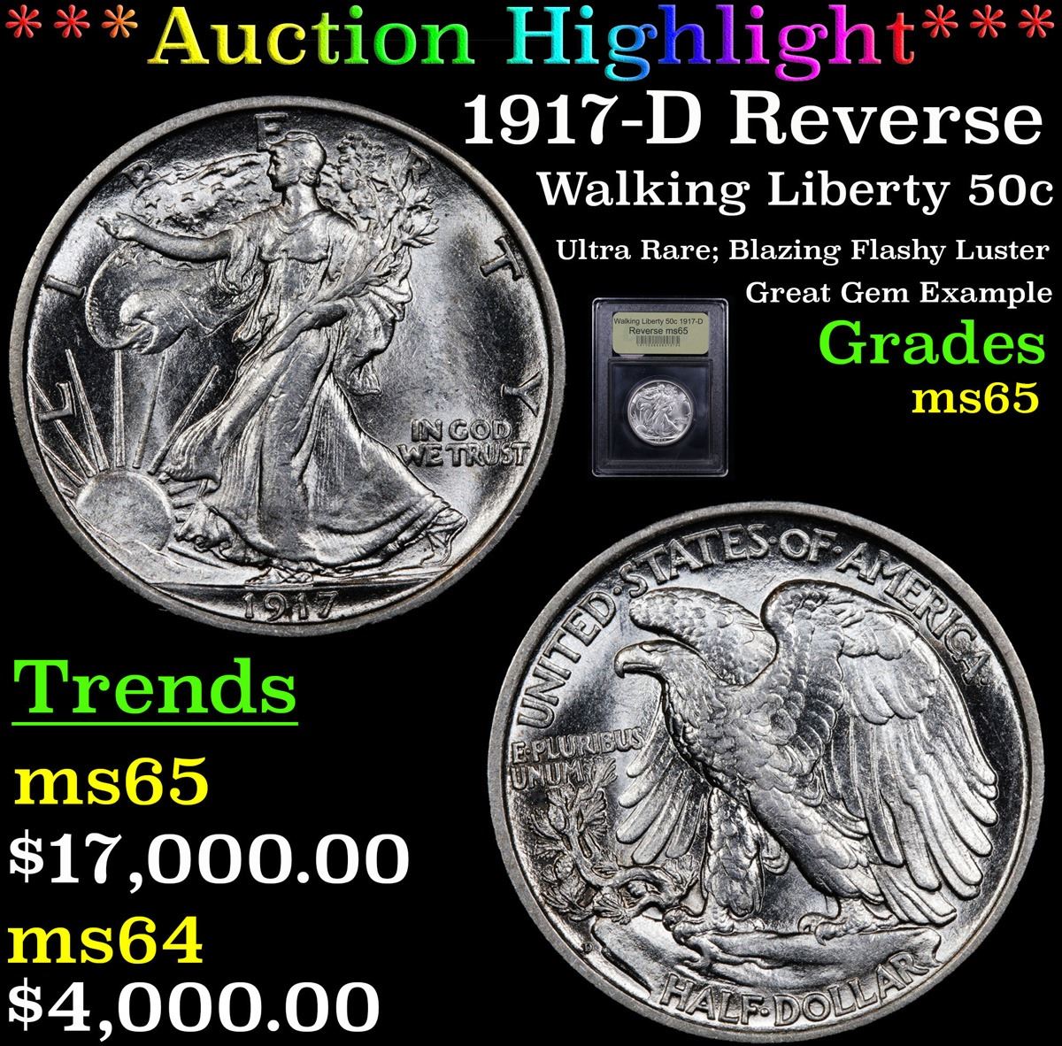 ***Auction Highlight*** 1917-D Reverse Walking Liberty Half Dollar 50c Graded GEM Unc By USCG. Up for auction is a superb GEM example of an Ultra rare Walking Liberty. Blazing flashy luster, terrific strike, outstanding eye appeal. Per David Hall of PCGS �The 1917-D on Reverse is a semi-key date in the Walking Liberty half dollar series. It is scarce in circulated grades and very scarce in mint state. Gems are rare. In Gem condition, the 1917-D Reverse is decidedly rarer than the 1917-D obverse. A Corey's Pick, Bid to Win, Don't let it get Away, you might not find its equal Coin. I give this coin my highest recommendation