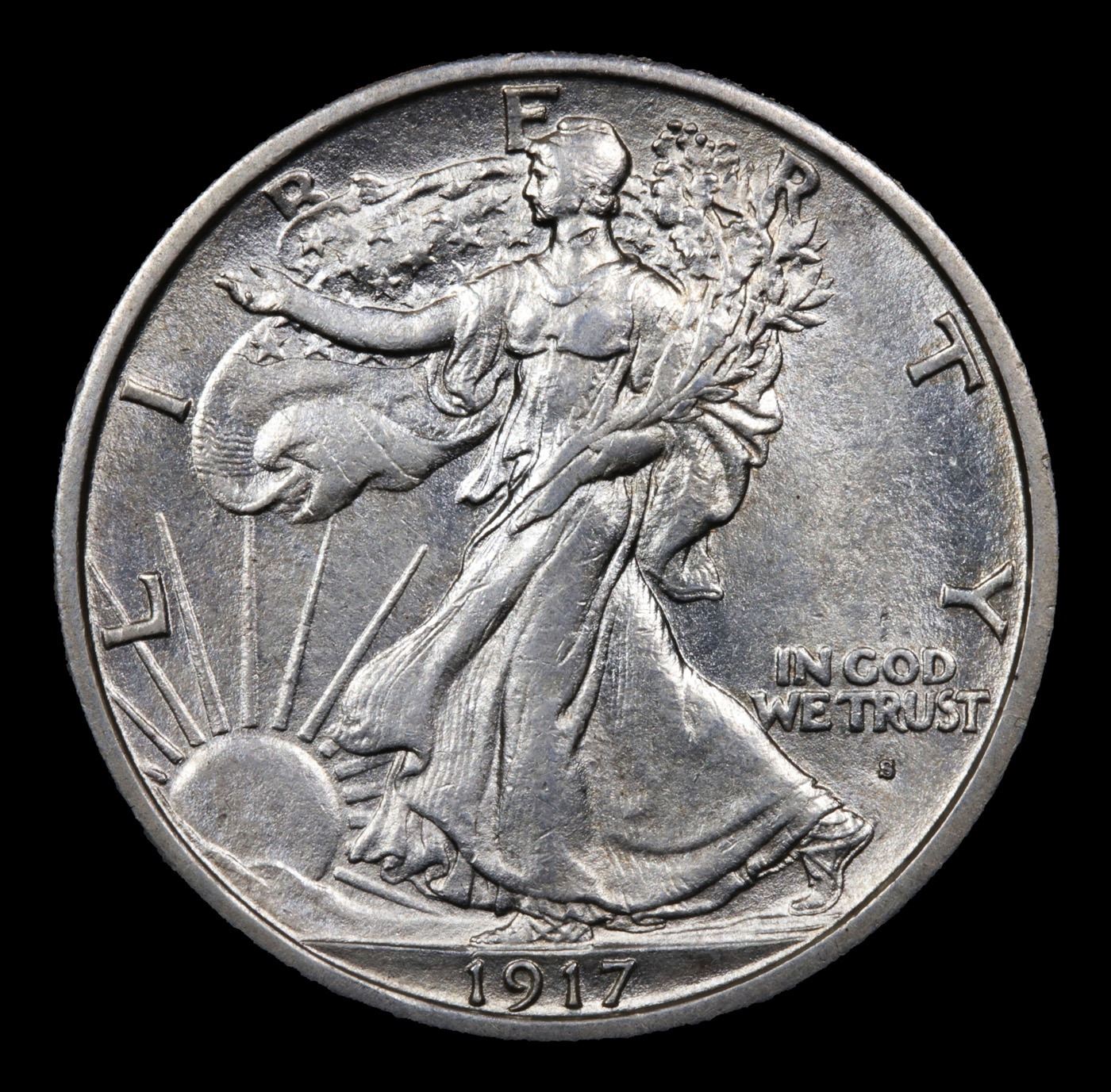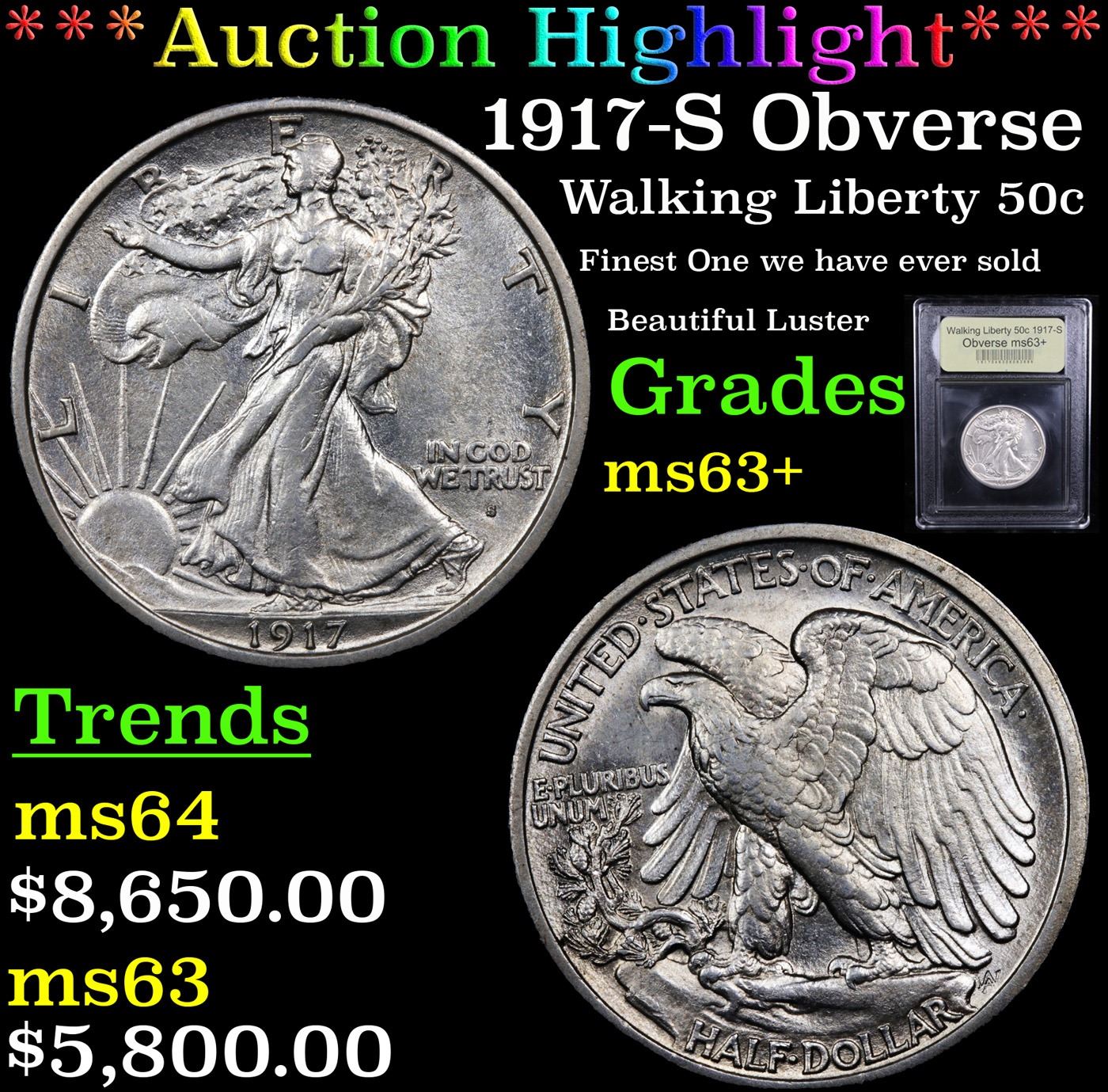***Auction Highlight*** 1917-S Obverse Walking Liberty Half Dollar 50c Graded Select+ Unc BY USCG. This half dollar has splendid frosty luster and the slightly textured finish seen so often on early date Walking Liberty issues. The strike is quite sharp and the surfaces are brilliant with just the lightest golden tinting seen mostly on the reverse. This is a low mintage date with only 952,000 pieces struck in 1917 at San Francisco with the mintmark prominently placed on the obverse. For many years this issue was considered one of the key dates to the series, especially in high grades. Later in 1917, the U.S. Mint decided to move the mintmark on the Walking Liberty half dollar from the obverse to the reverse. This change was requested by the Mint Director F.J.H. von Engelken as he personally didn't like the mint mark on the obverse of the coin. This created two varieties struck in 1917 from the Denver and San Francisco Mints. In both cases, the obverse variety is the rarer of the two. This is a coin worthy of a fine collection. A Corey's Pick, Bid to Win, Don't let it get Away, you might not find its equal Coin. I give this coin my highest recommendation