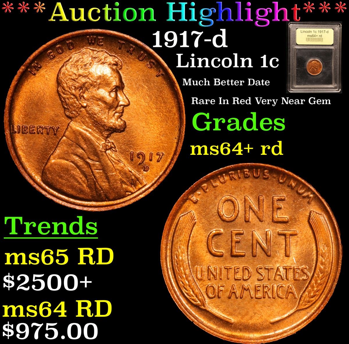 ***Auction Highlight*** 1917-d Much Better Date Rare In Red Very Near Gem Lincoln Cent 1c Graded Choice+ Unc RD By USCG. A Corey's Pick, Bid to Win, Don't let it get Away Coin
