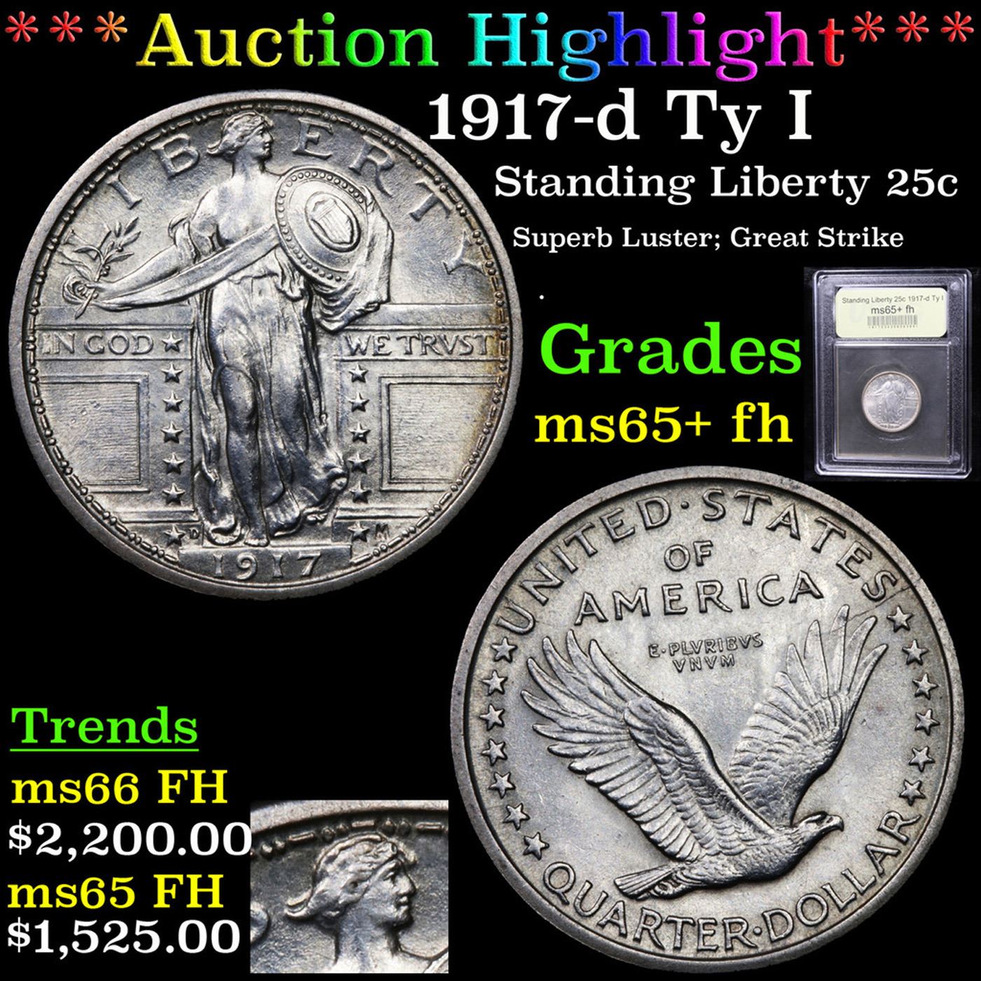 ***Auction Highlight*** 1917-d Ty I Standing Liberty Quarter 25c Graded GEM+ FH BY USCG (fc)