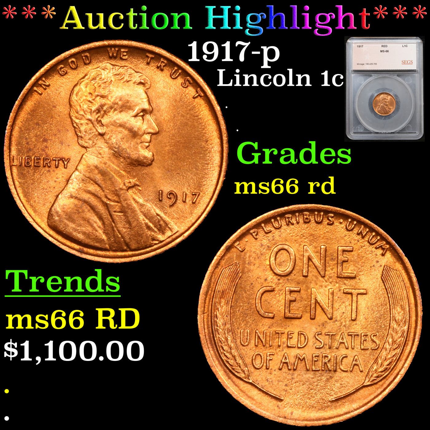 ***Auction Highlight*** 1917-p Lincoln Cent 1c Graded ms66 rd By SEGS.