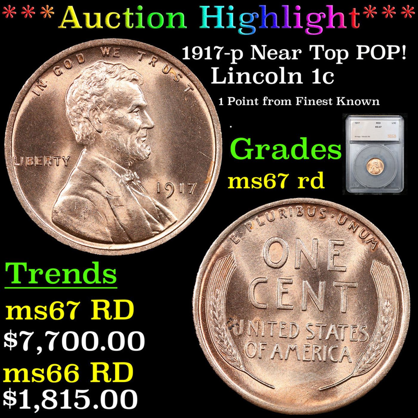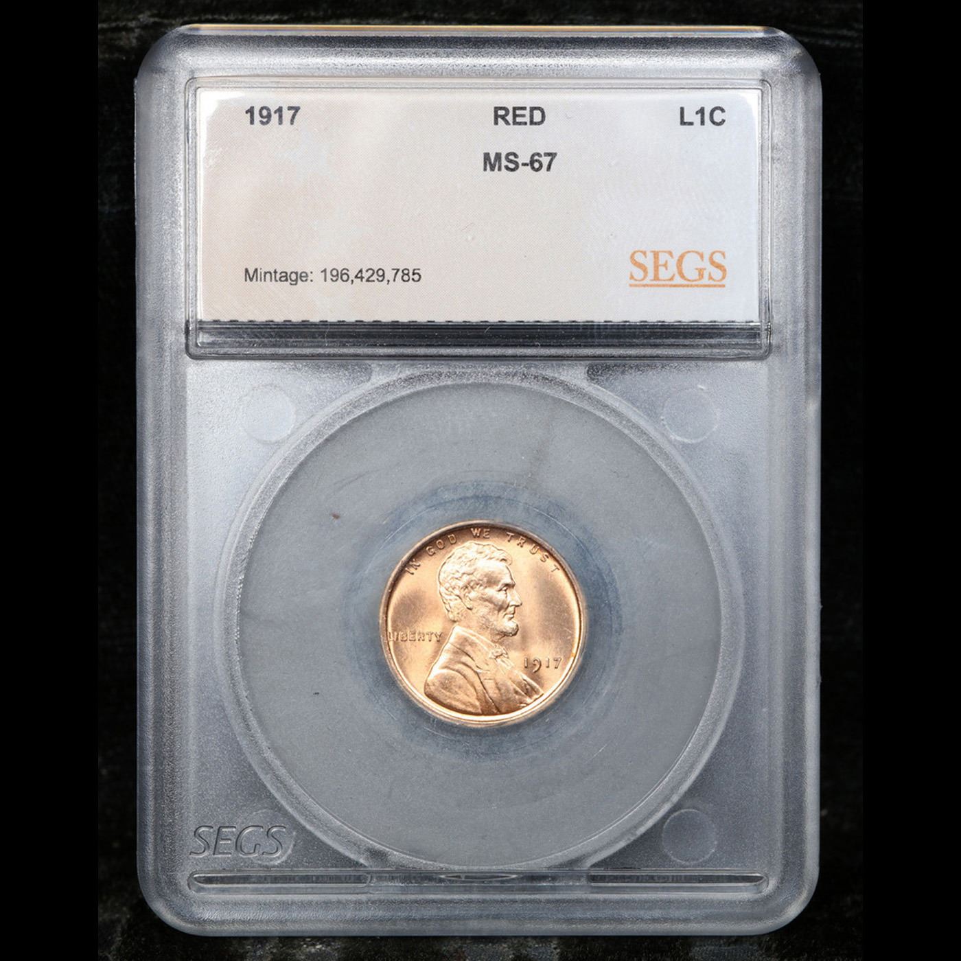 ***Auction Highlight*** 1917-p Near Top POP! Lincoln Cent 1c Graded ms67 rd By SEGS. A Corey's Pick, Bid to Win, Don't let it get Away, you might not find its equal Coin. I give this coin my highest recommendation