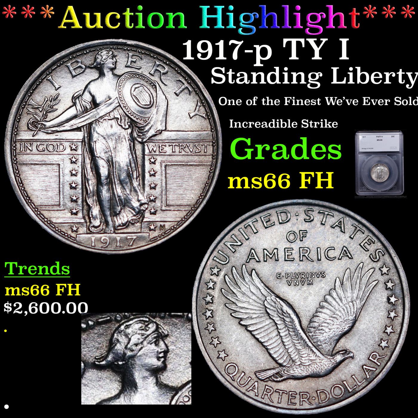 ***Auction Highlight*** 1917-p TY I Standing Liberty Quarter 25c Graded ms66 FH BY SEGS (fc)