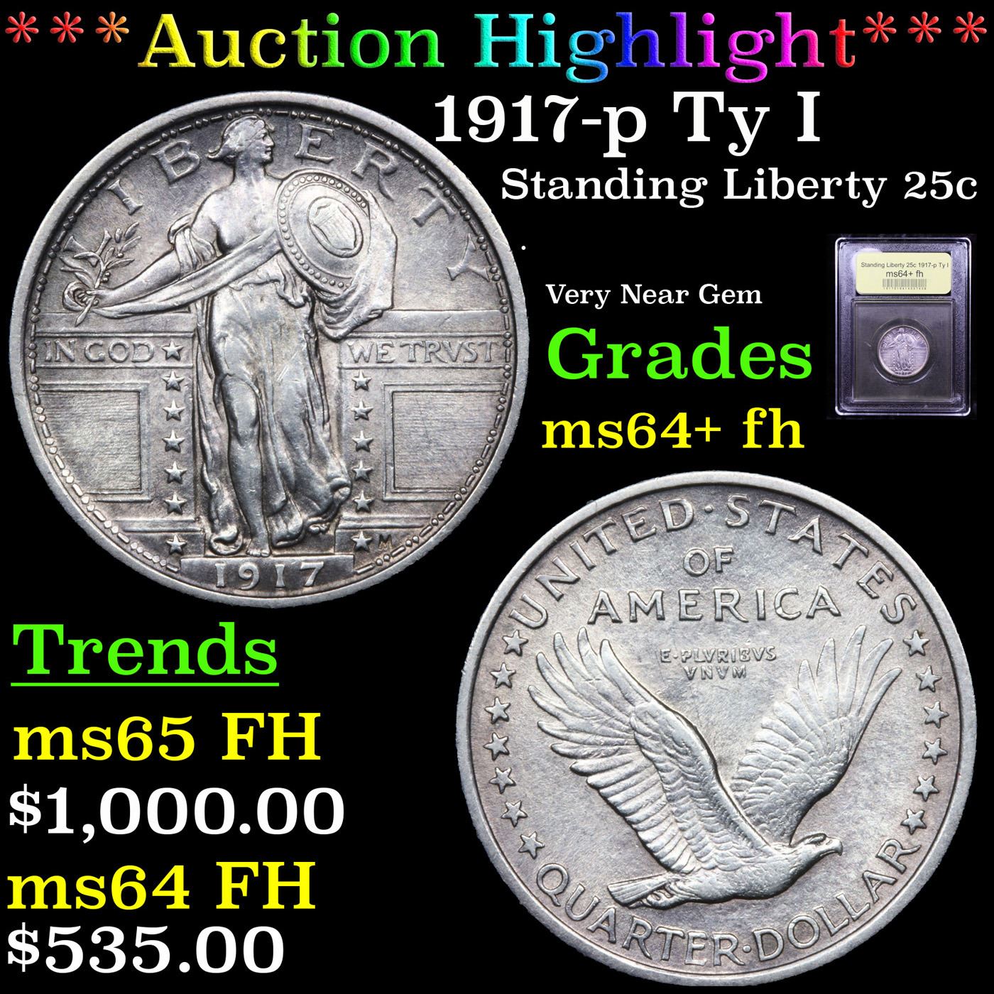 ***Auction Highlight*** 1917-p Ty I Standing Liberty Quarter 25c Graded Choice Unc+ FH By USCG. A Corey's Pick, Bid to Win Coin