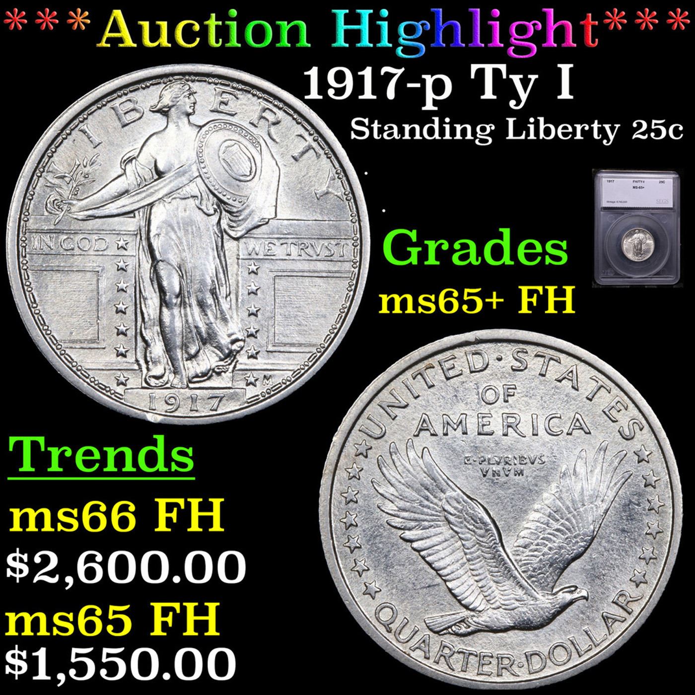 ***Auction Highlight*** 1917-p Ty I Standing Liberty Quarter 25c Graded ms65+ FH BY SEGS (fc)