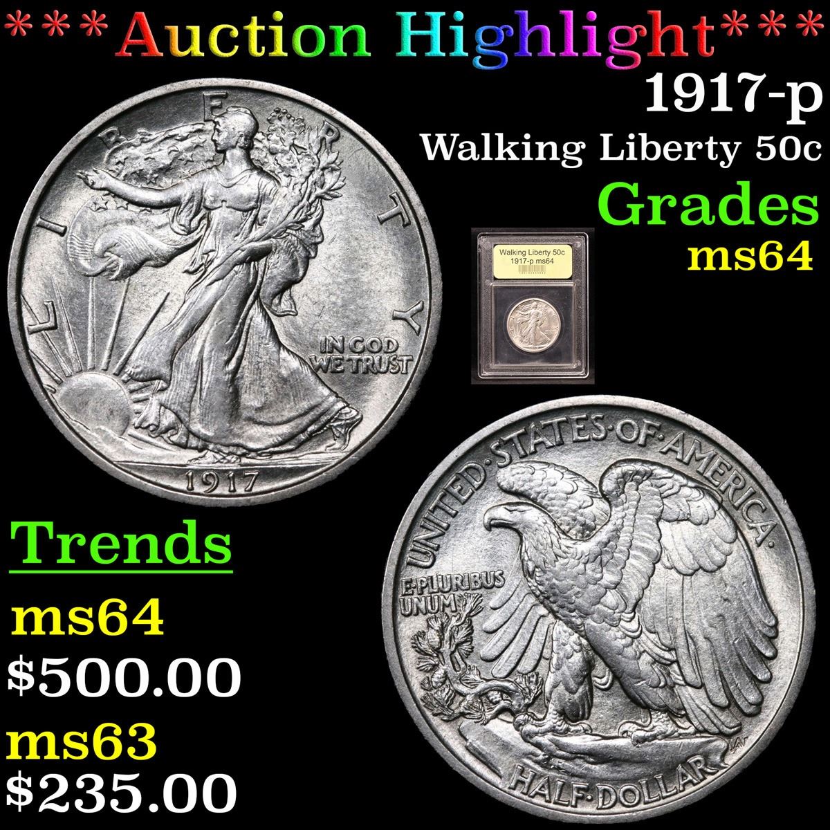 ***Auction Highlight*** 1917-p . . Walking Liberty Half Dollar 50c Graded Choice Unc By USCG.