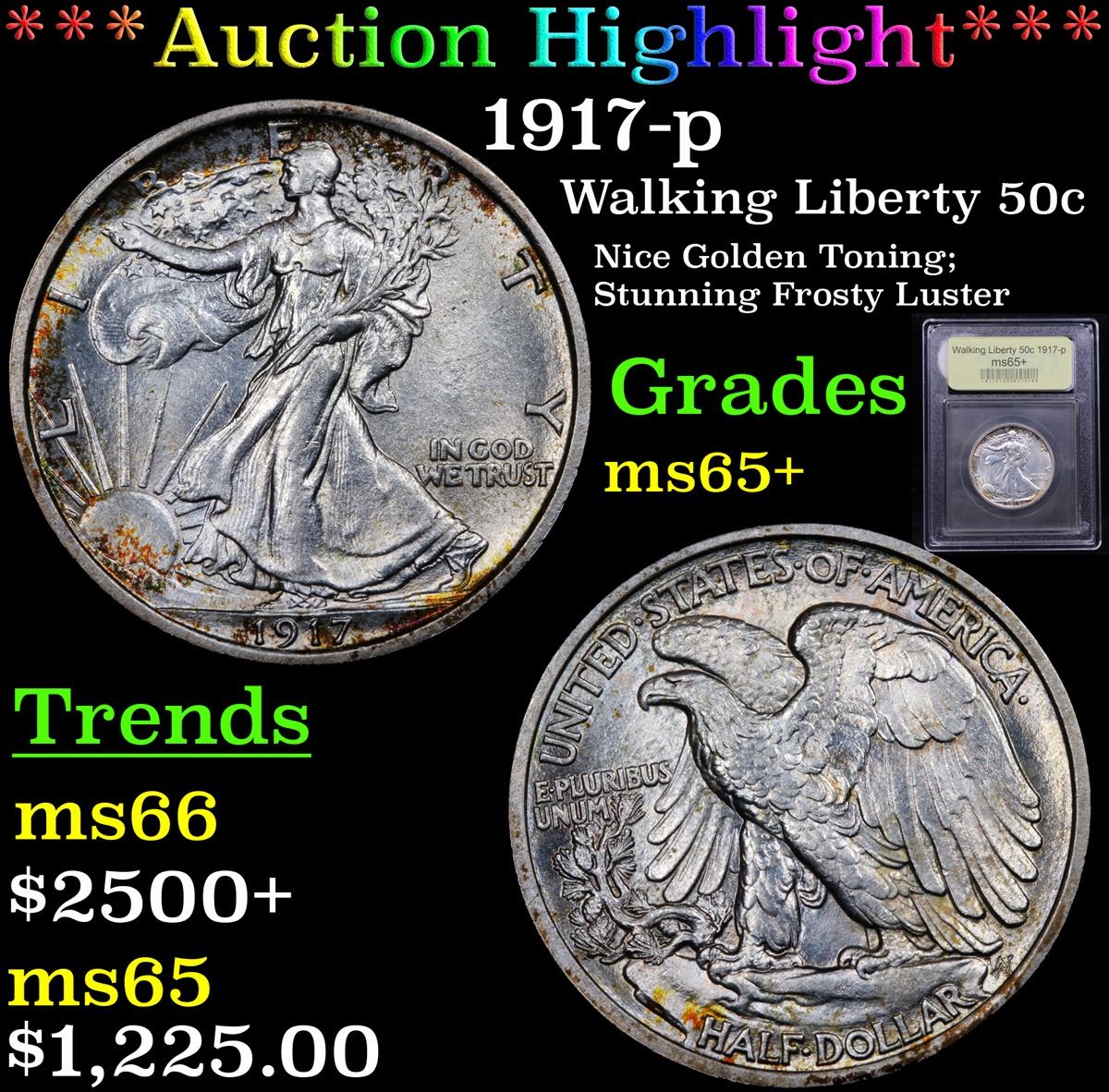 ***Auction Highlight*** 1917-p Walking Liberty Half Dollar 50c Graded GEM+ Unc By USCG (fc)