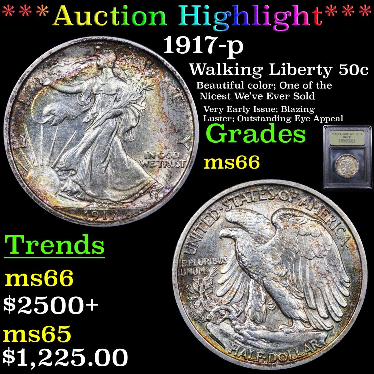 ***Auction Highlight*** 1917-p Walking Liberty Half Dollar 50c Graded GEM+ Unc By USCG. A Corey's Pick, Bid to Win, Don't let it get Away, you might not find its equal Coin