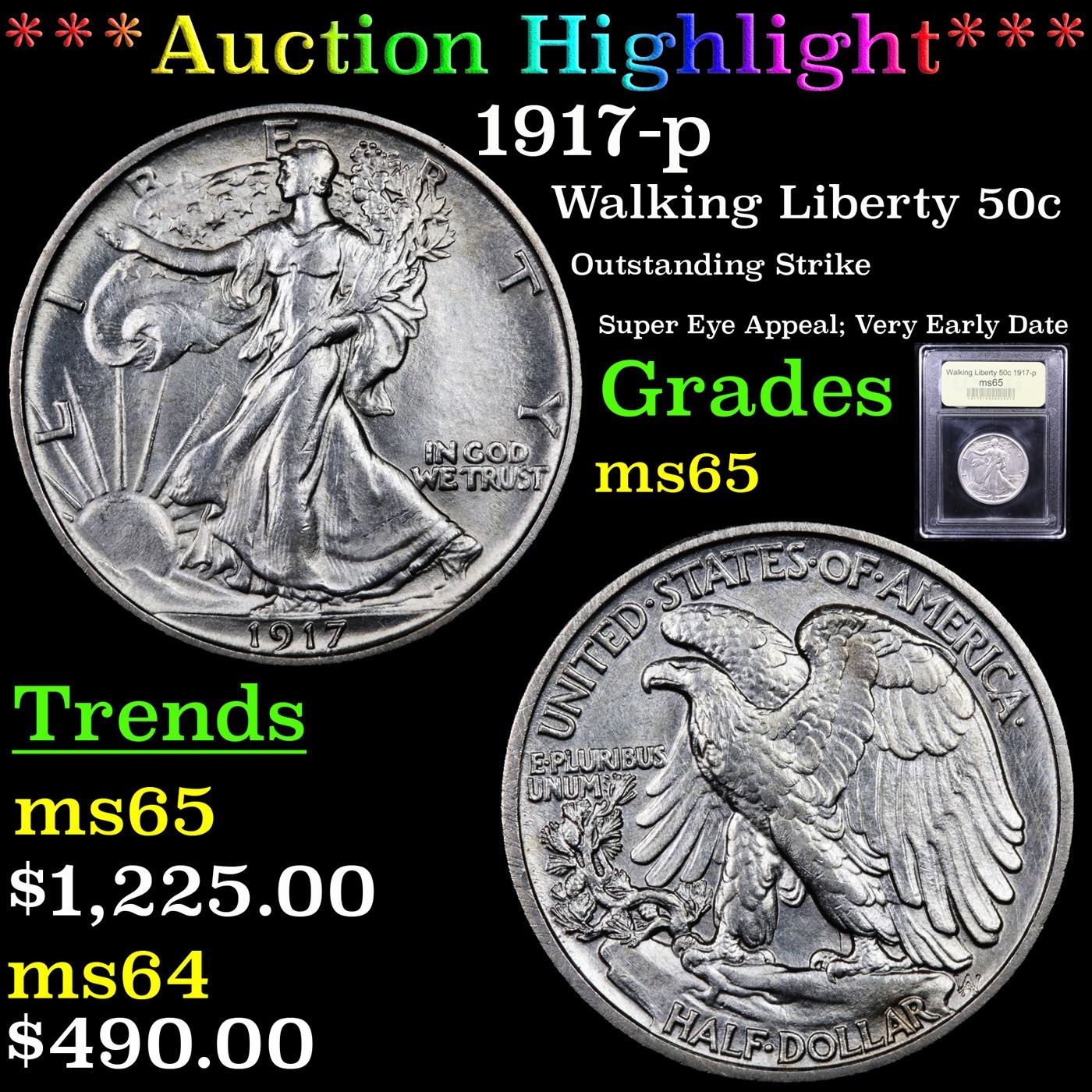 ***Auction Highlight*** 1917-p Walking Liberty Half Dollar 50c Graded GEM Unc By USCG (fc)