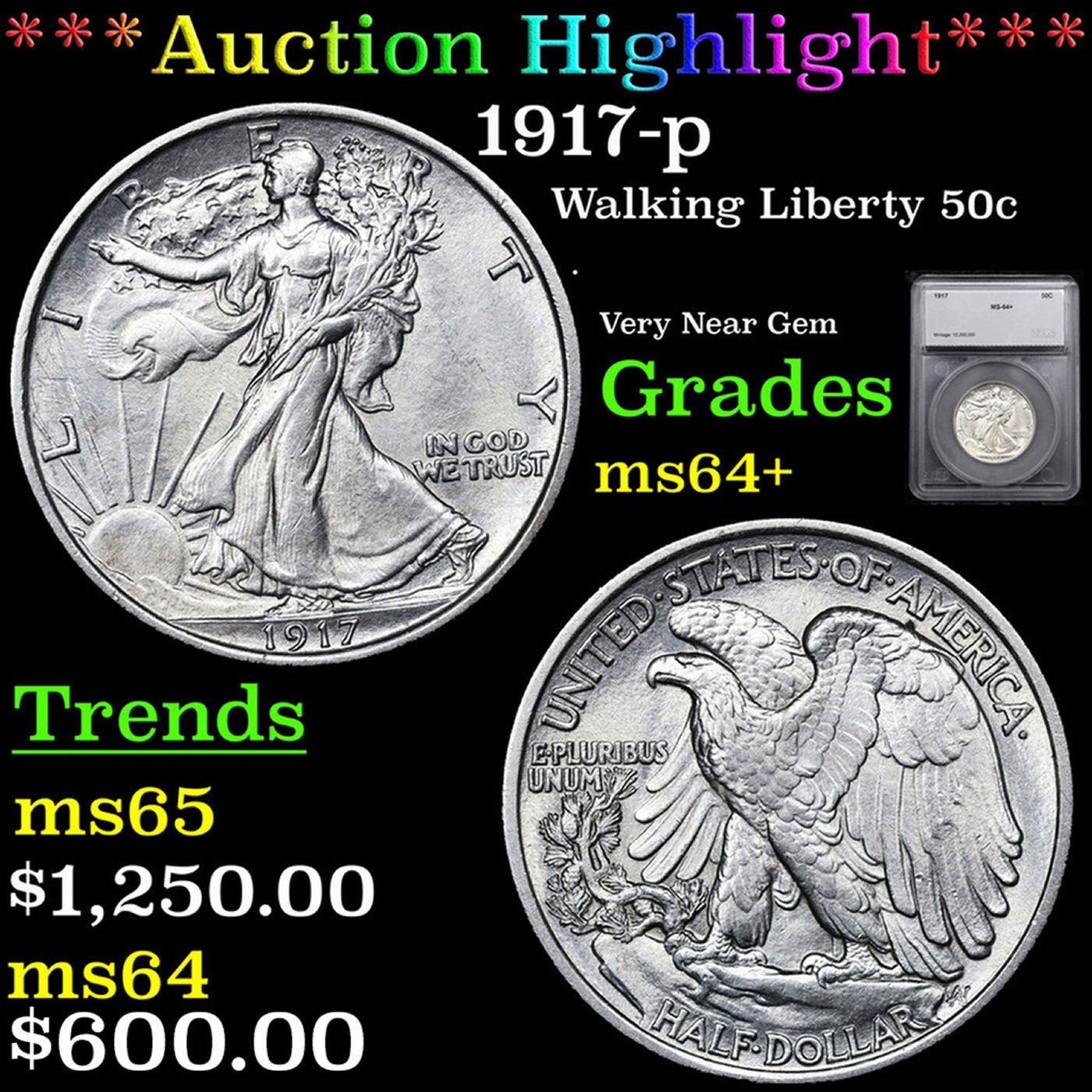 ***Auction Highlight*** 1917-p Walking Liberty Half Dollar 50c Graded ms64+ By SEGS.