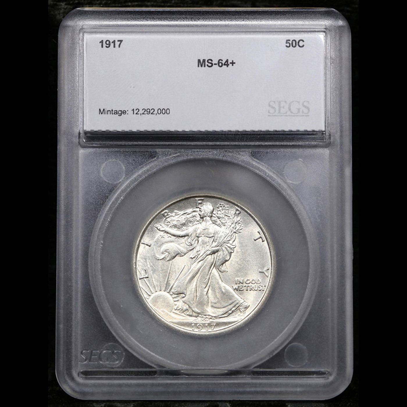 ***Auction Highlight*** 1917-p Walking Liberty Half Dollar 50c Graded ms64+ By SEGS (fc)