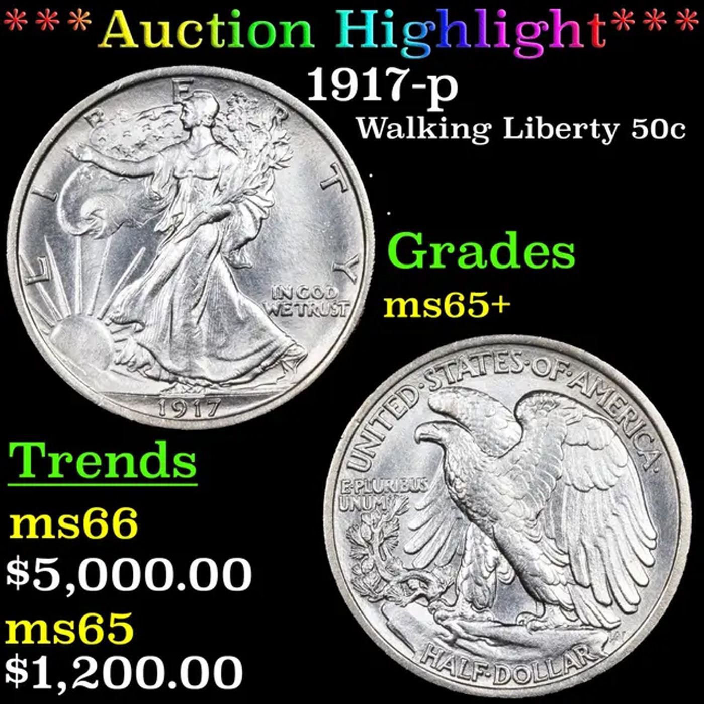 ***Auction Highlight*** 1917-p Walking Liberty Half Dollar 50c Grades GEM+ Unc.