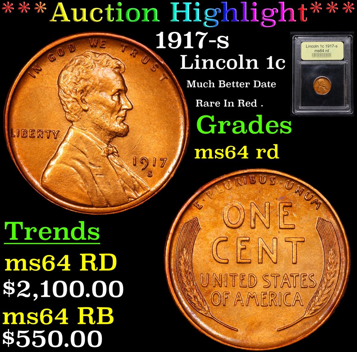 ***Auction Highlight*** 1917-s Much Better Date Rare In Red . Lincoln Cent 1c Graded Choice Unc RD By USCG. A Corey's Pick, Bid to Win, Don't let it get Away Coin