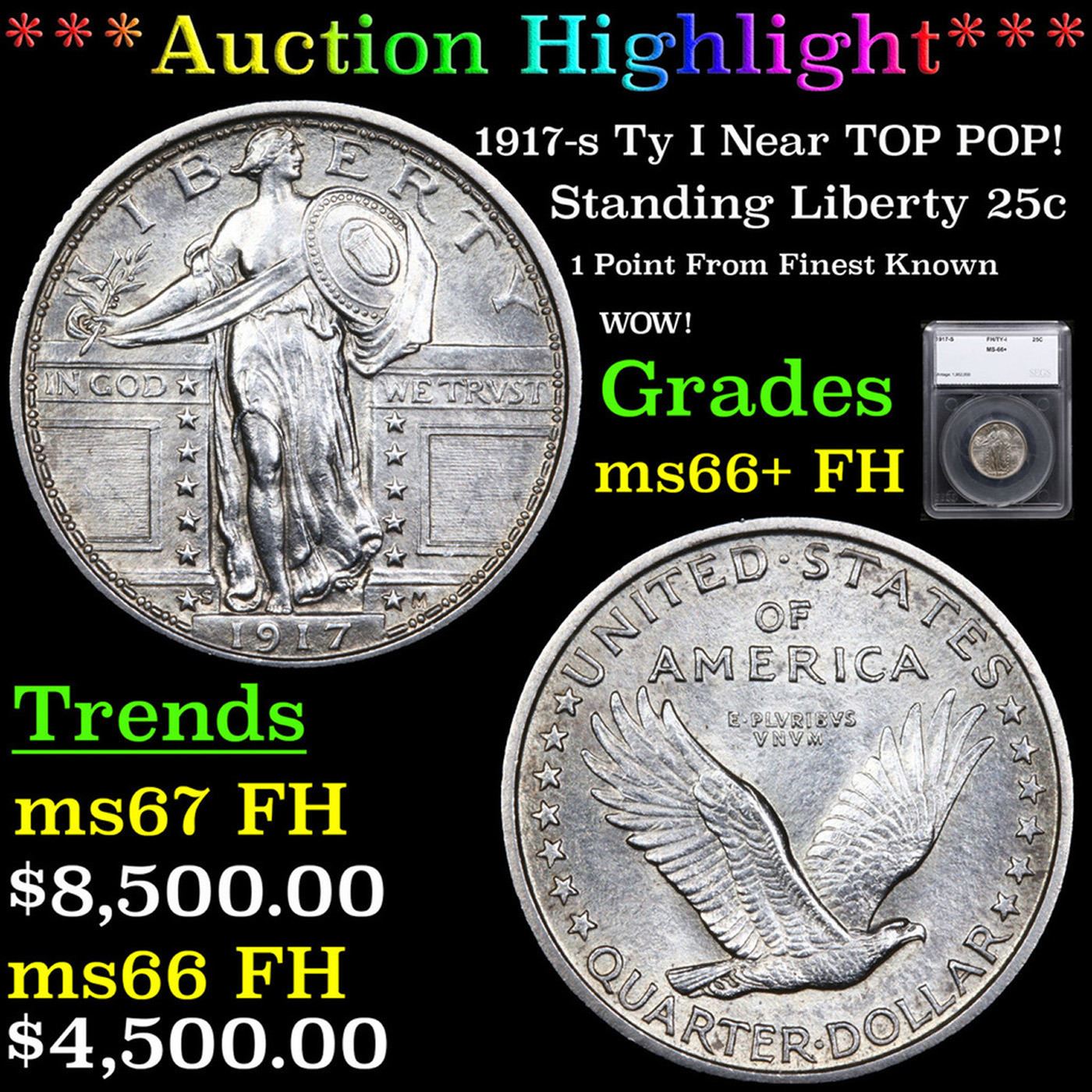 ***Auction Highlight*** 1917-s Ty I Near TOP POP! Standing Liberty Quarter 25c Graded ms66+ FH BY SEGS. A Corey's Pick, Bid to Win, Don't let it get Away, you might not find its equal Coin. I give this coin my highest recommendation