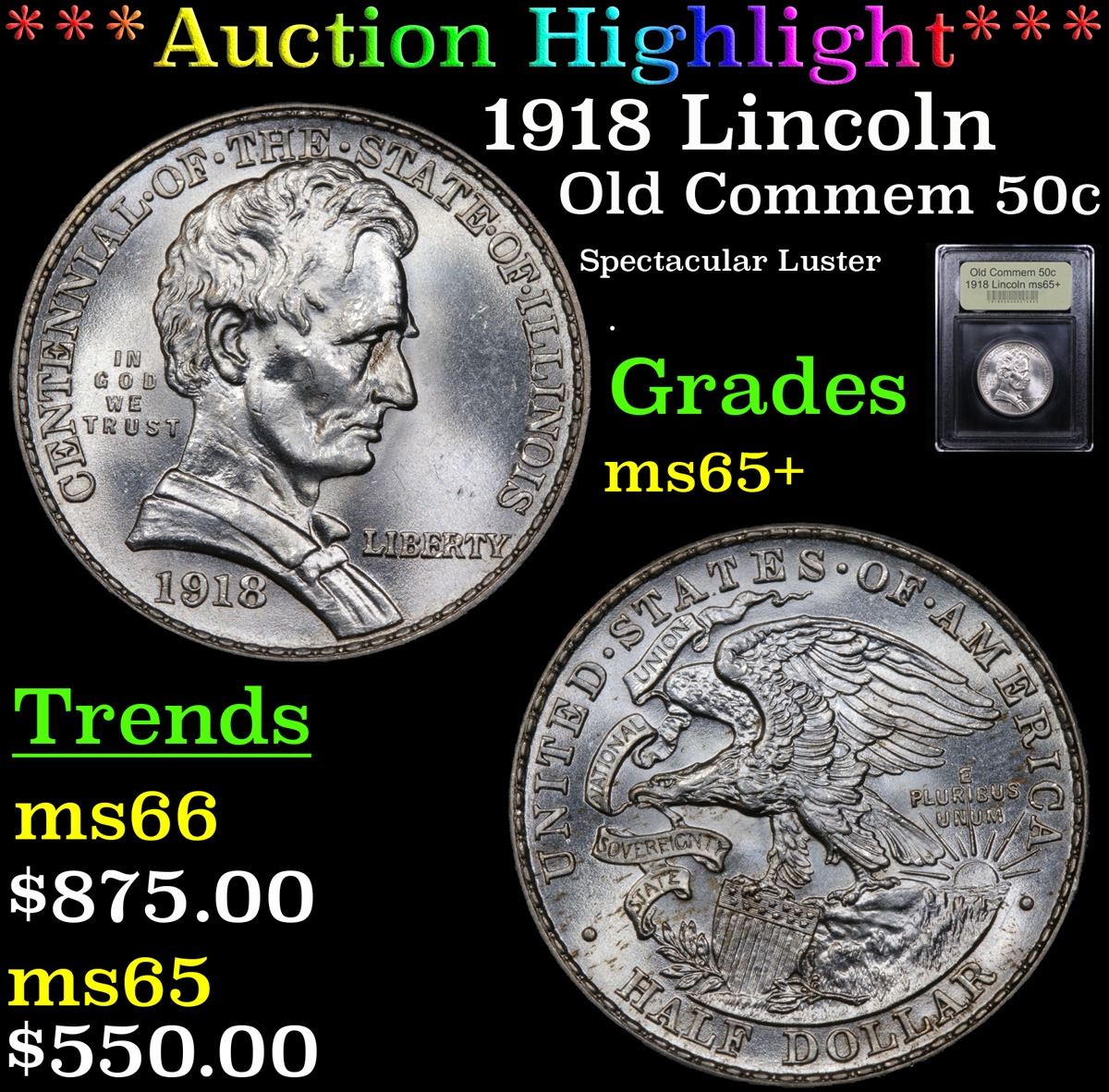 ***Auction Highlight*** 1918 Lincoln Old Commem Half Dollar 50c Graded GEM+ Unc By USCG (fc)