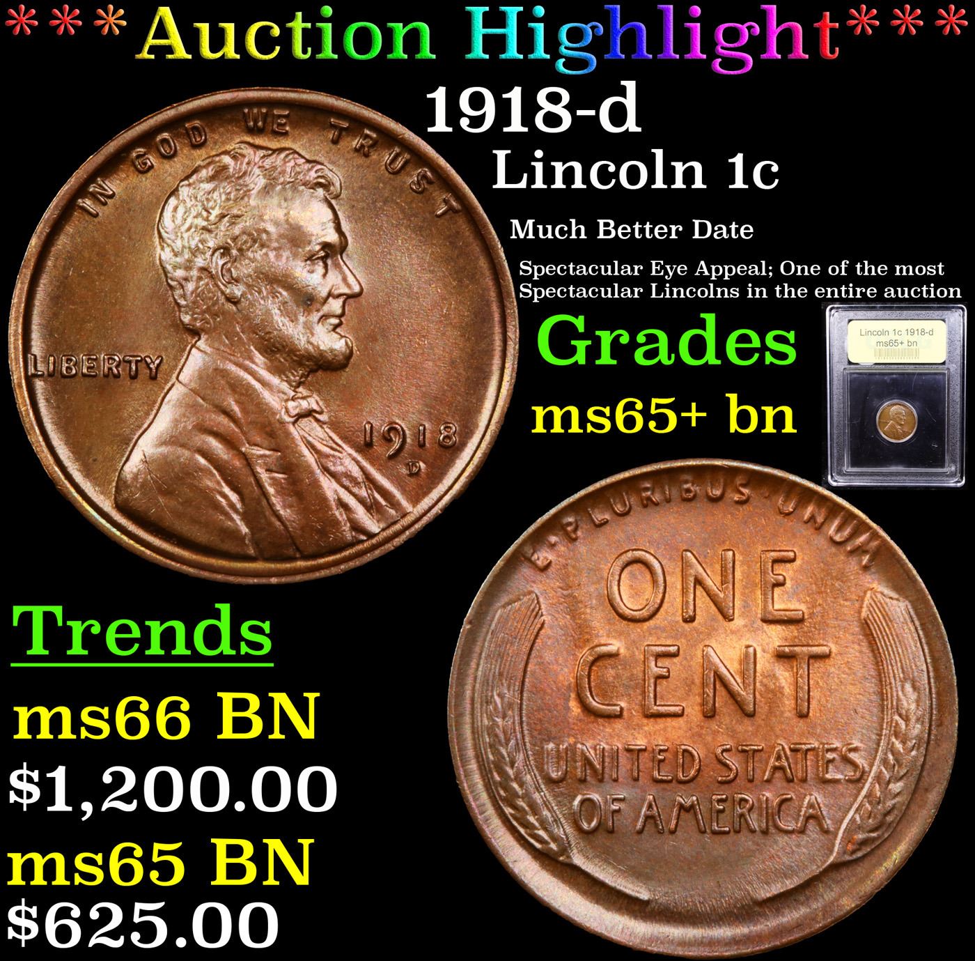 ***Auction Highlight*** 1918-d Lincoln Cent 1c Graded GEM+ Unc BN By USCG. A Corey's Pick, Bid to Win, Don't let it get Away, you might not find its equal Coin. I give this coin my highest recommendation