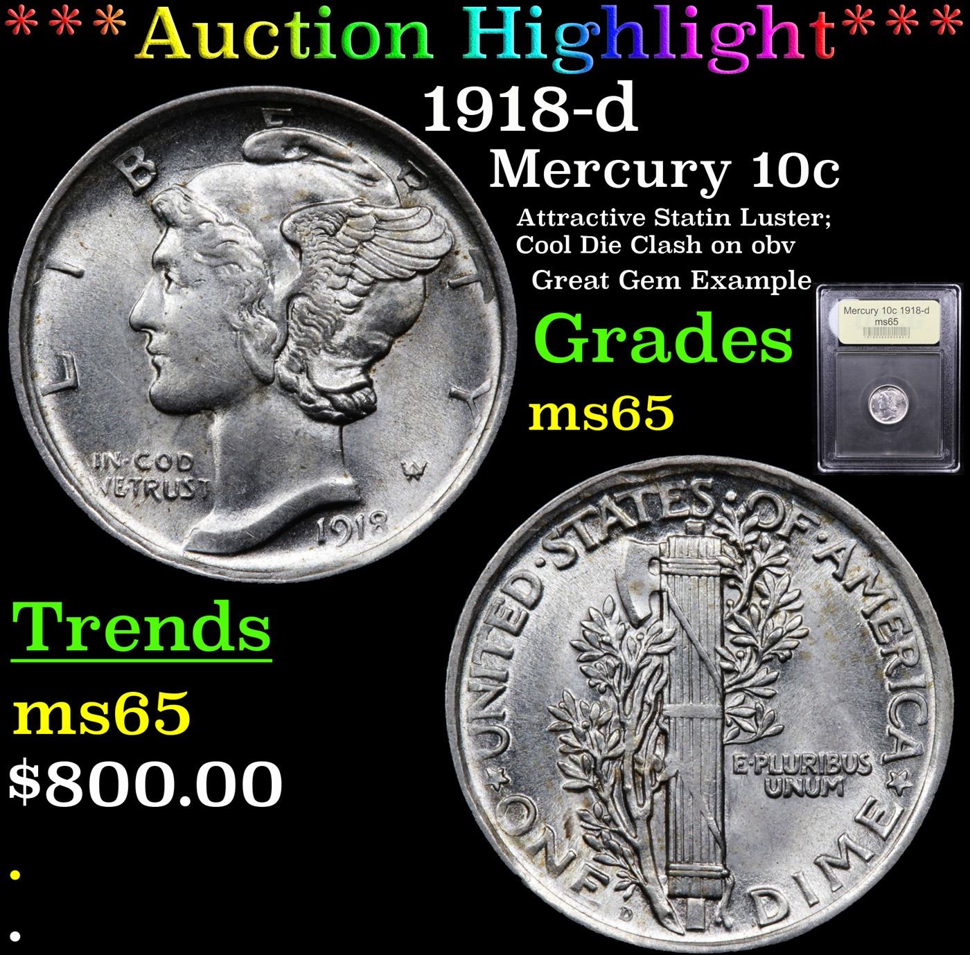 ***Auction Highlight*** 1918-d Mercury Dime 10c Graded GEM Unc By USCG. A Corey's Pick, Bid to Win Coin