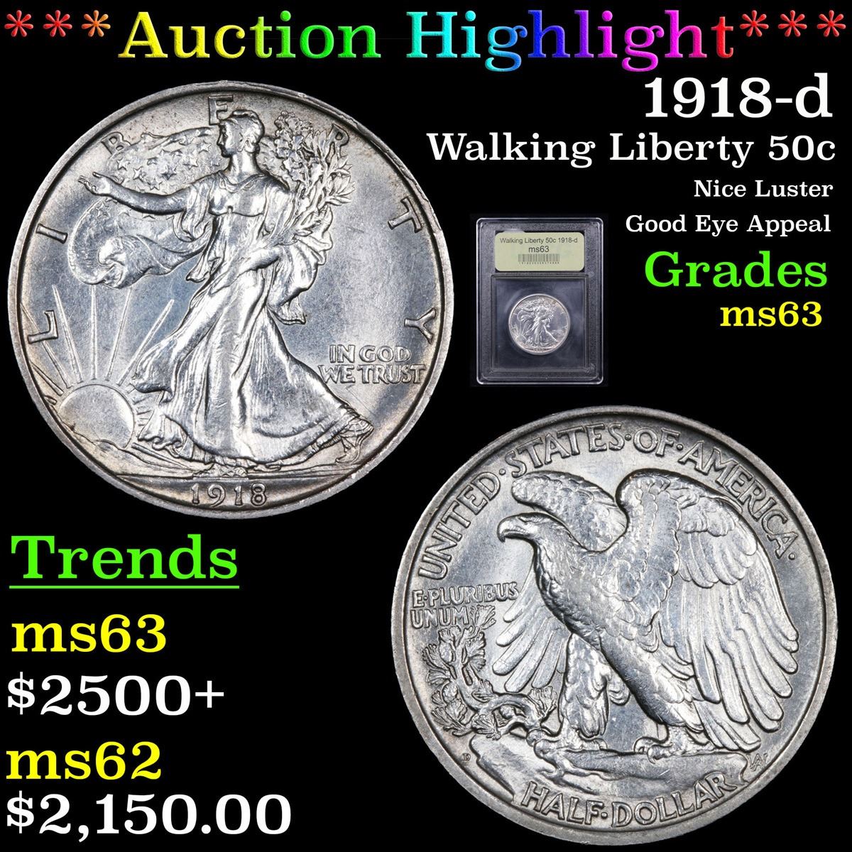 ***Auction Highlight*** 1918-d Nice Luster Good Eye Appeal Walking Liberty Half Dollar 50c Graded Select Unc By USCG. A Corey's Pick, Bid to Win, Don't let it get Away, you might not find its equal Coin
