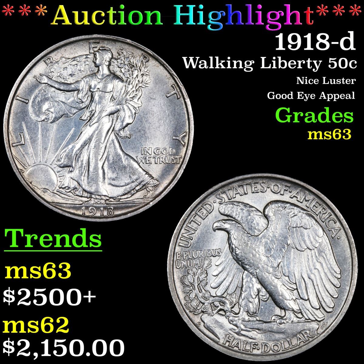 ***Auction Highlight*** 1918-d Nice Luster Good Eye Appeal Walking Liberty Half Dollar 50c Graded Select Unc By USCG. A Corey's Pick, Bid to Win, Don't let it get Away, you might not find its equal Coin