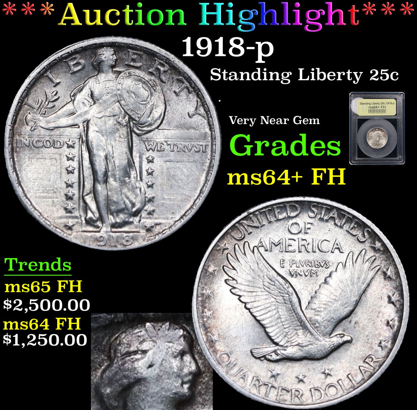 ***Auction Highlight*** 1918-p Standing Liberty Quarter 25c Graded Choice Unc+ FH BY USCG.