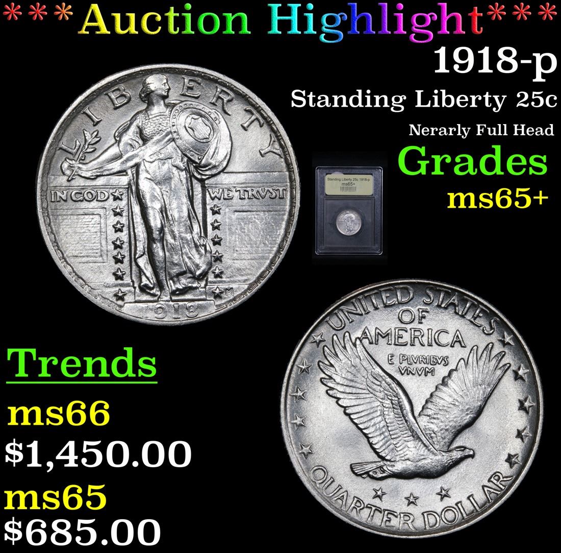 ***Auction Highlight*** 1918-p Nerarly Full Head . Standing Liberty Quarter 25c Graded GEM+ Unc By USCG. A Corey's Pick, Bid to Win, Don't let it get Away Coin