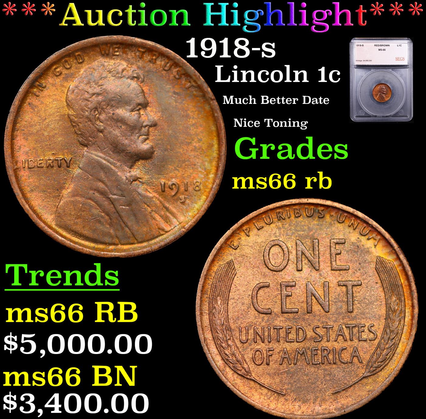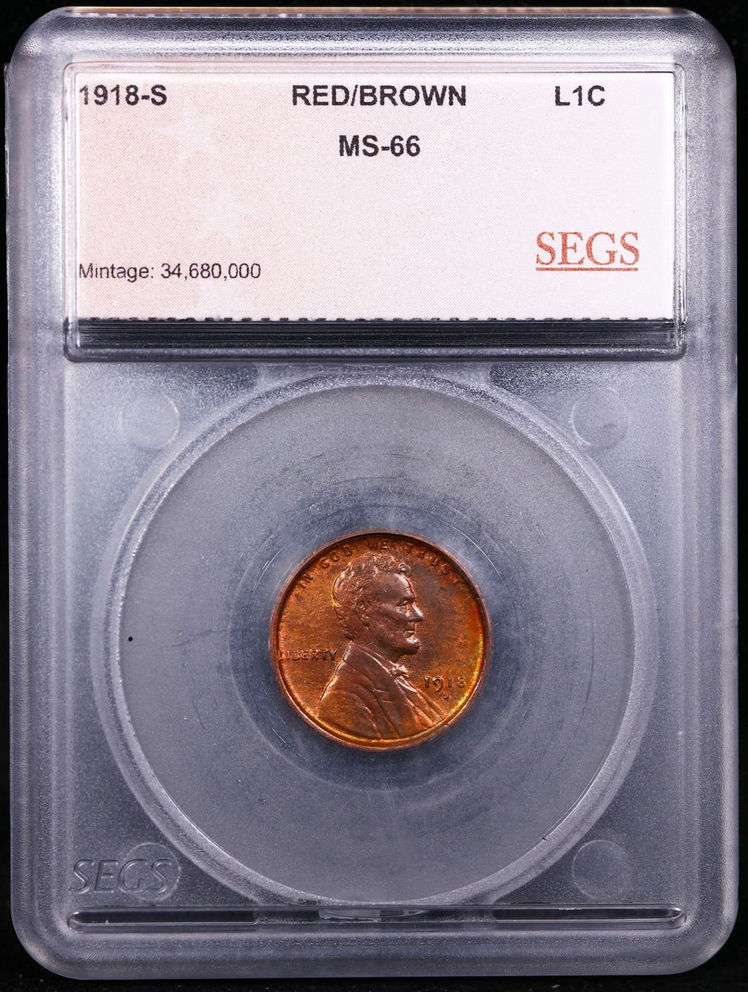 ***Auction Highlight*** 1918-s Lincoln Cent 1c Graded ms66 rb BY SEGS. A Key Date's Pick, Bid to Win, Don't let it get Away Coin