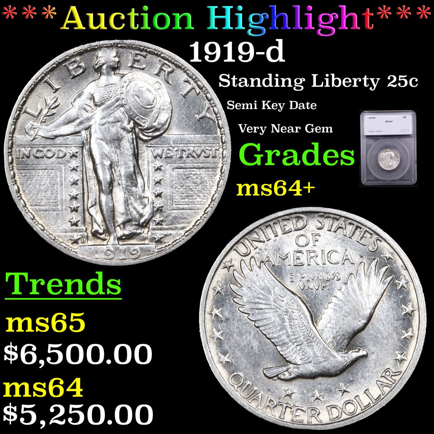***Auction Highlight*** 1919-d Standing Liberty Quarter 25c Graded ms64+ BY SEGS. A Key Date's Pick, Bid to Win, Don't let it get Away, you might not find its equal Coin