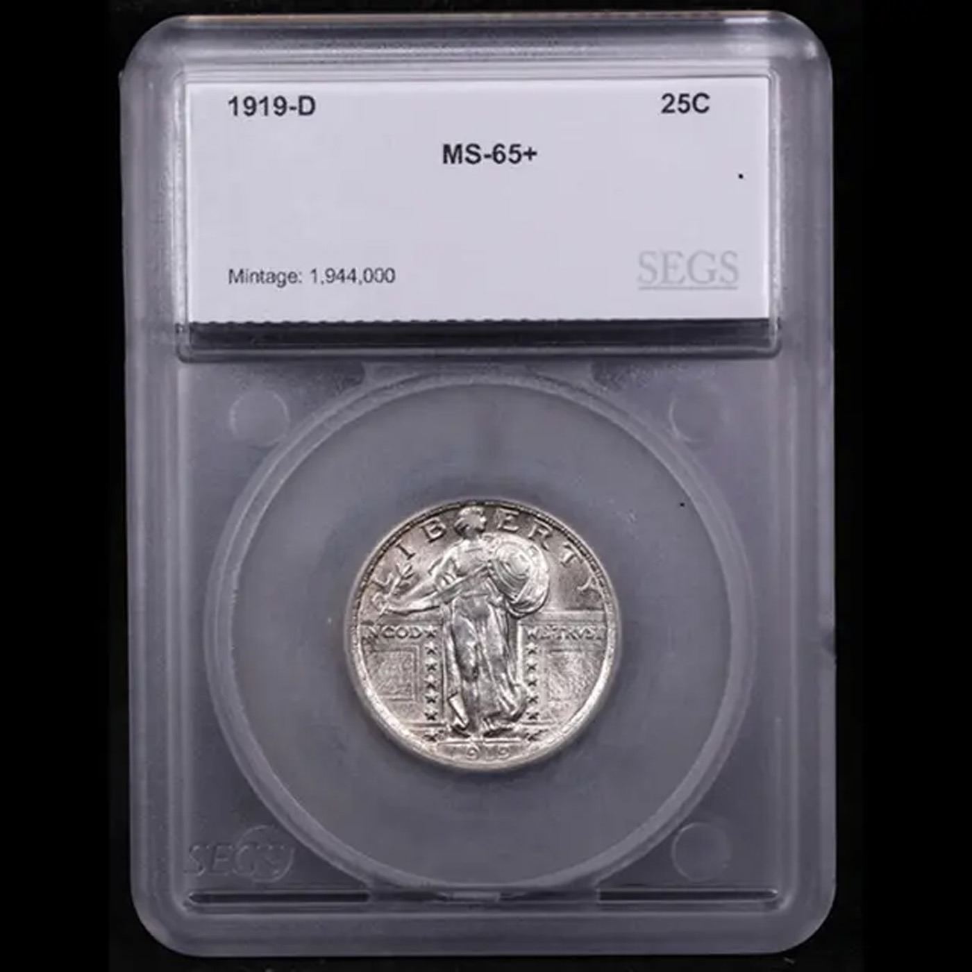 ***Auction Highlight*** 1919-d Standing Liberty Quarter 25c Graded ms65+ BY SEGS. A Key Date's Pick, Bid to Win, Don't let it get Away, you might not find its equal Coin
