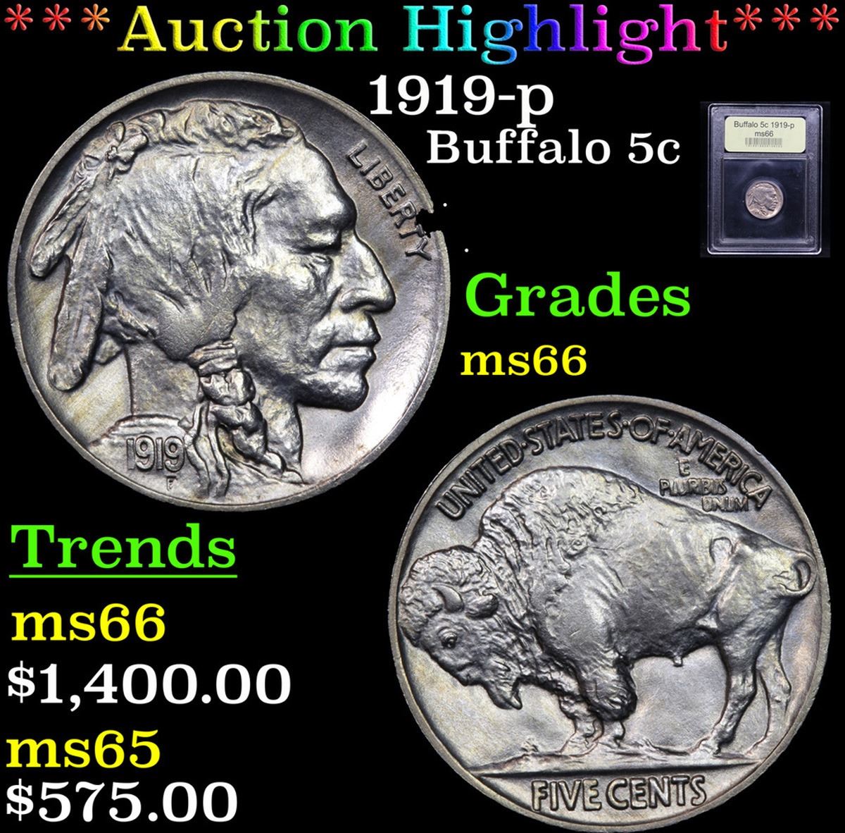 ***Auction Highlight*** 1919-p Buffalo Nickel 5c Graded GEM+ Unc By USCG.