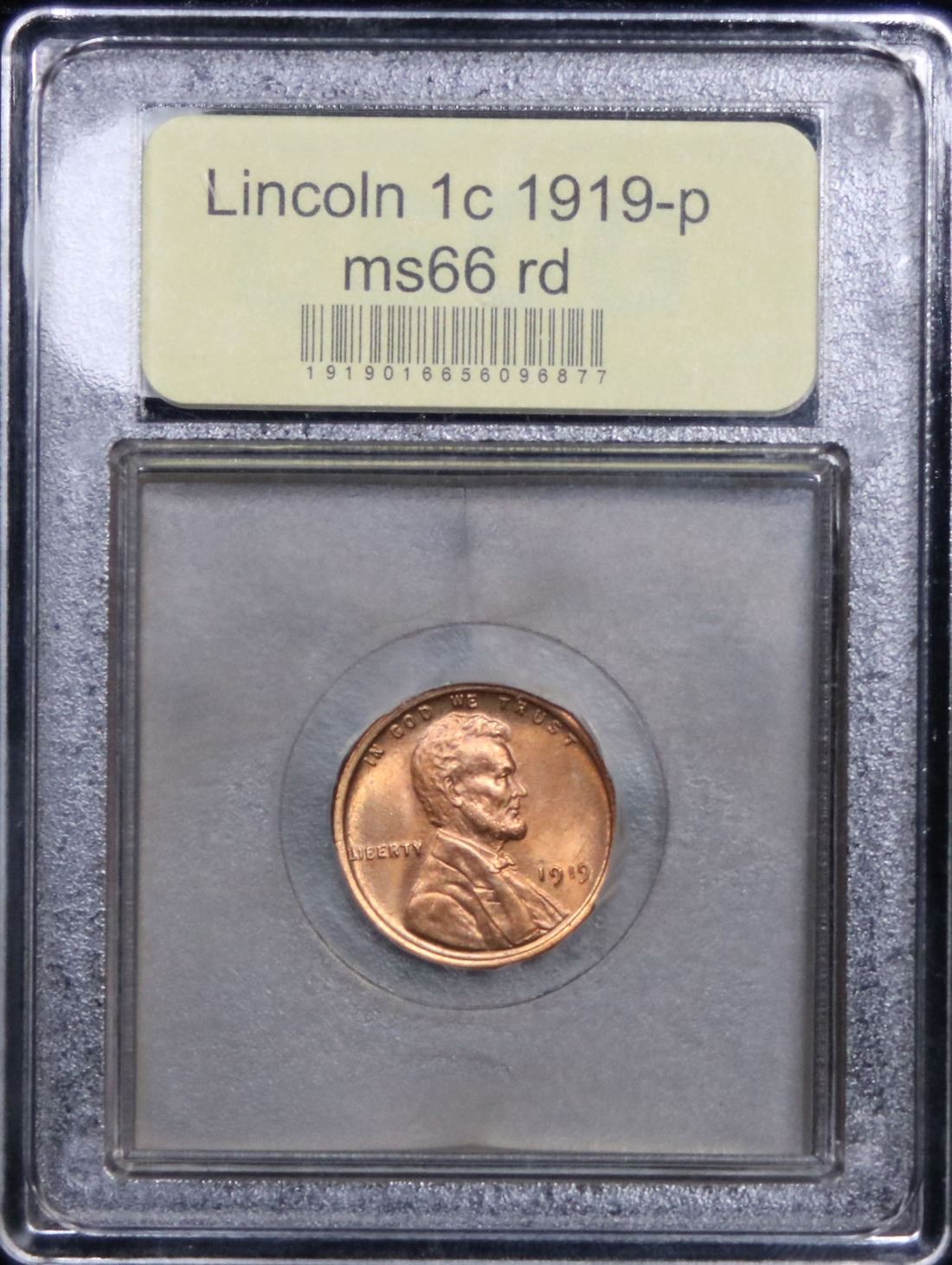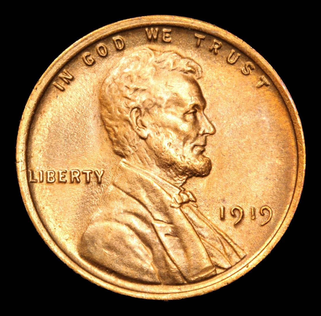 ***Auction Highlight*** 1919-p . . Lincoln Cent 1c Graded GEM+ Unc RD By USCG. Out of an original mintage of over 392 million pieces, PCGS estimates only 2500 survive in ms65 or better.