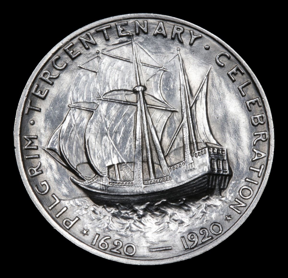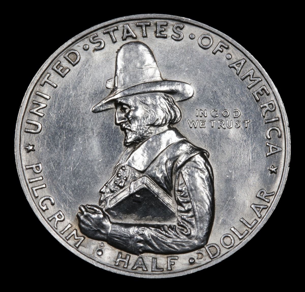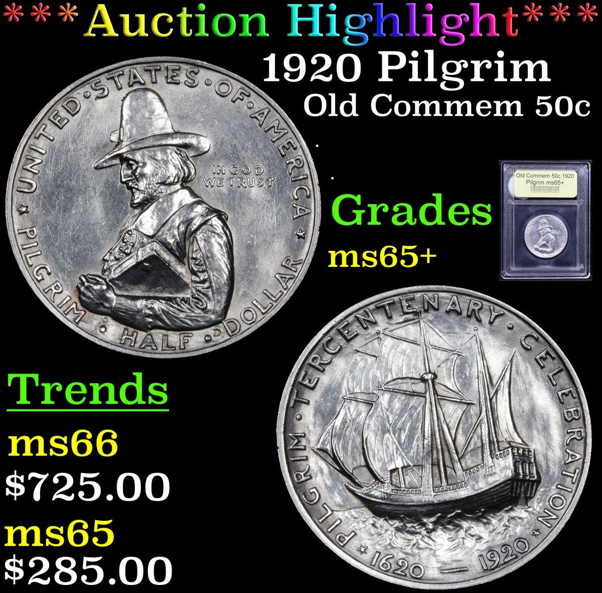 ***Auction Highlight*** 1920 Pilgrim Old Commem Half Dollar 50c Graded GEM+ Unc By USCG. When examining a Pilgrim, look for wear on the Crow's Nest and on the Cheek Bone on the Obverse, as these are the High Points. A Corey's Pick, Bid to Win Coin