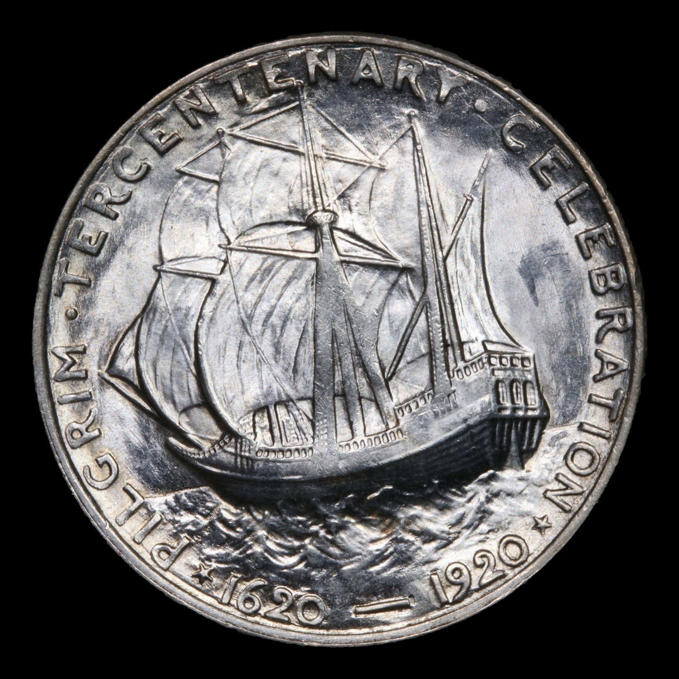 ***Auction Highlight*** 1920 Pilgrim Old Commem Half Dollar 50c Graded GEM+ Unc By USCG. When examining a Pilgrim, look for wear on the Crow's Nest and on the Cheek Bone on the Obverse, as these are the High Points.