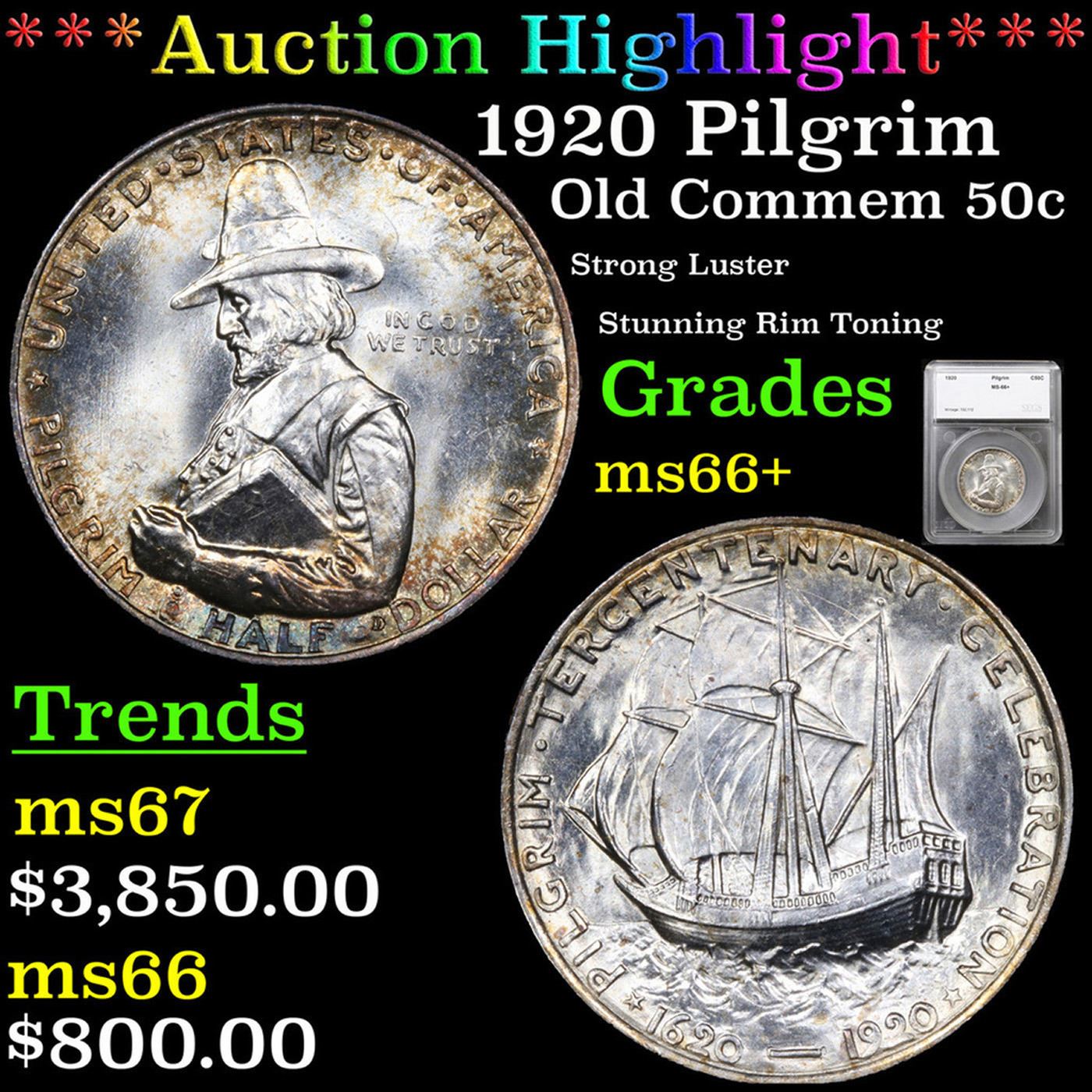 ***Auction Highlight*** 1920 Pilgrim Old Commem Half Dollar 50c Graded ms66+ By SEGS (fc)