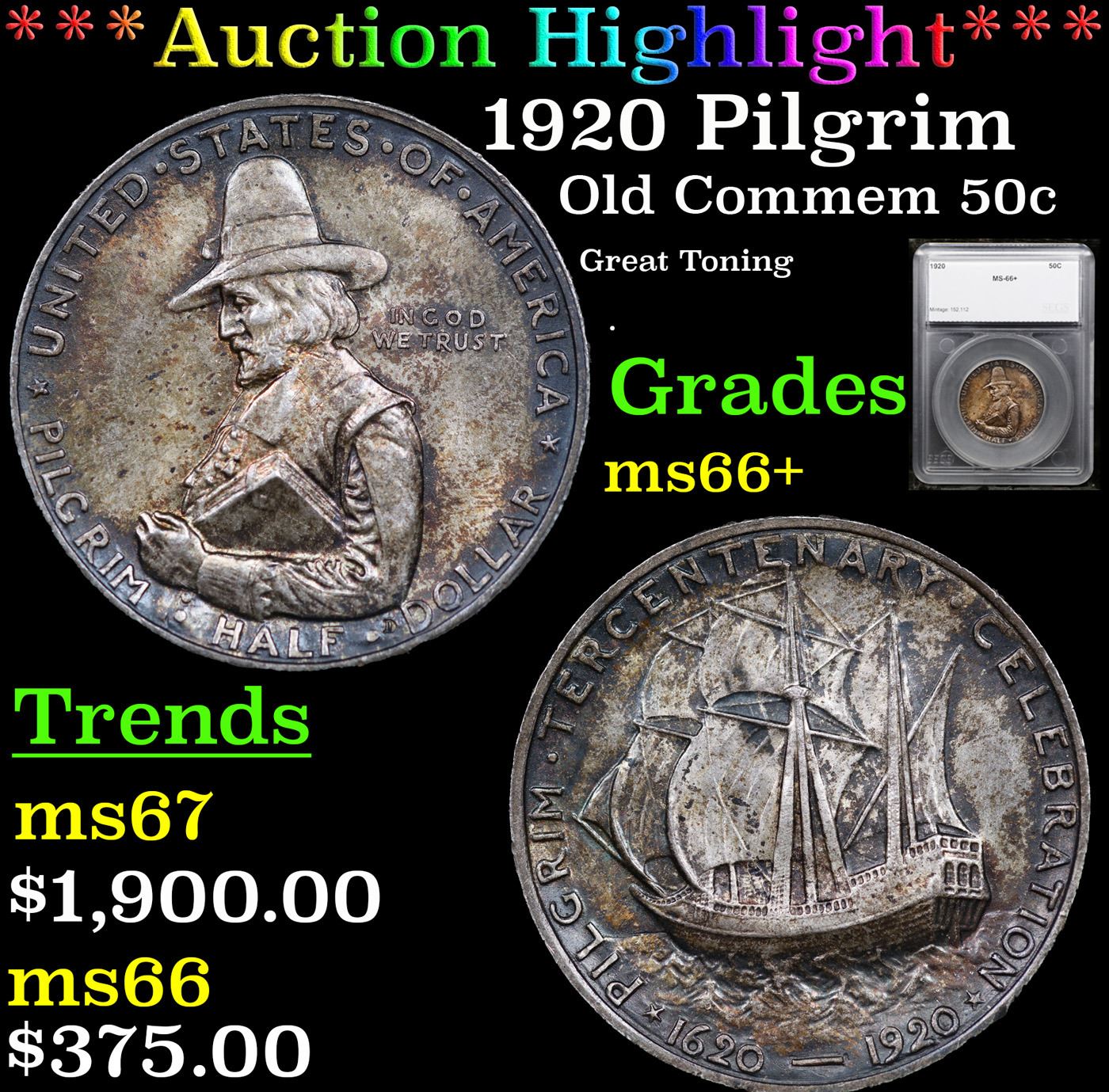 ***Auction Highlight*** 1920 Pilgrim Old Commem Half Dollar 50c Graded ms66+ By SEGS (fc)
