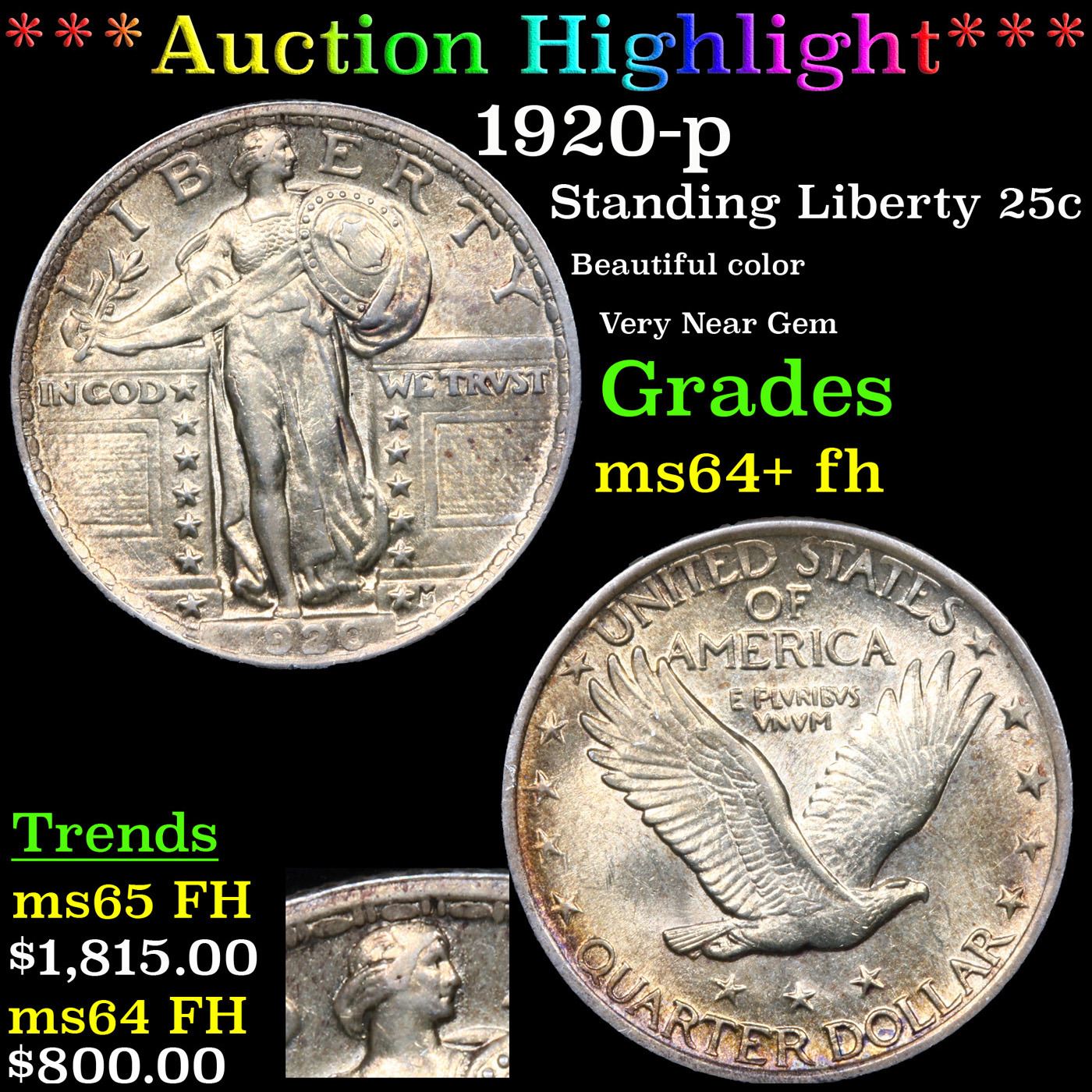 ***Auction Highlight*** 1920-p Standing Liberty Quarter 25c Graded ms64+ fh By SEGS.