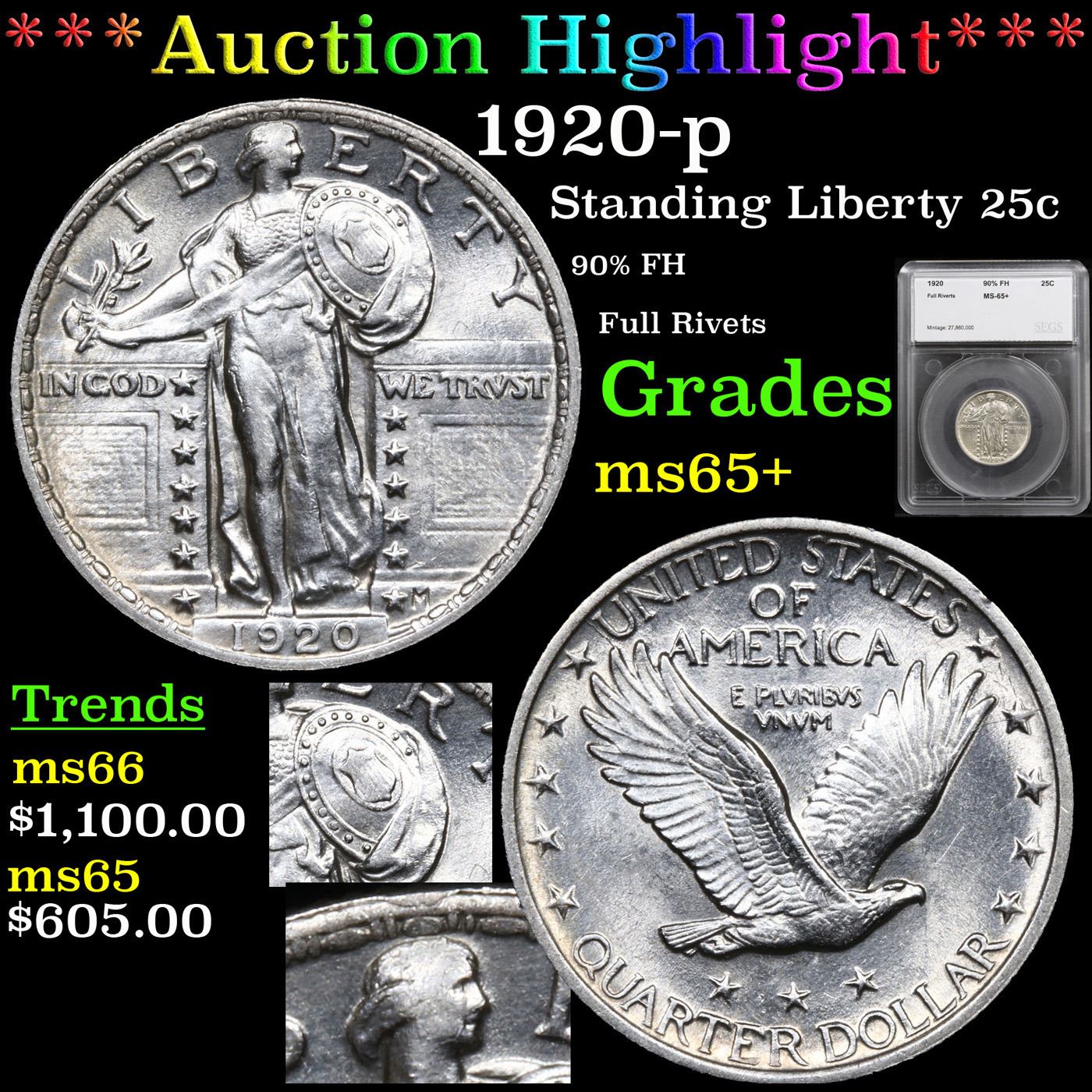 ***Auction Highlight*** 1920-p Standing Liberty Quarter 25c Graded ms65+ By SEGS.