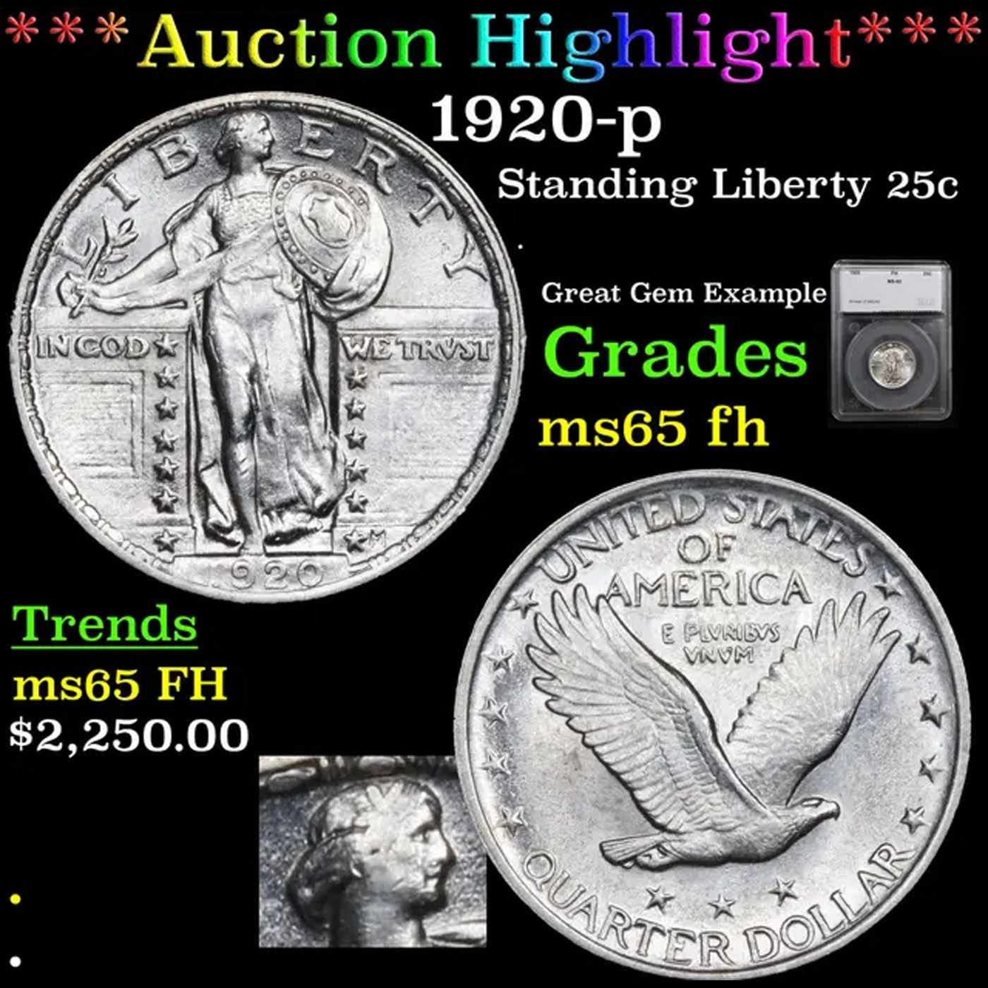 ***Auction Highlight*** 1920-p Standing Liberty Quarter 25c Grades GEM FH.
