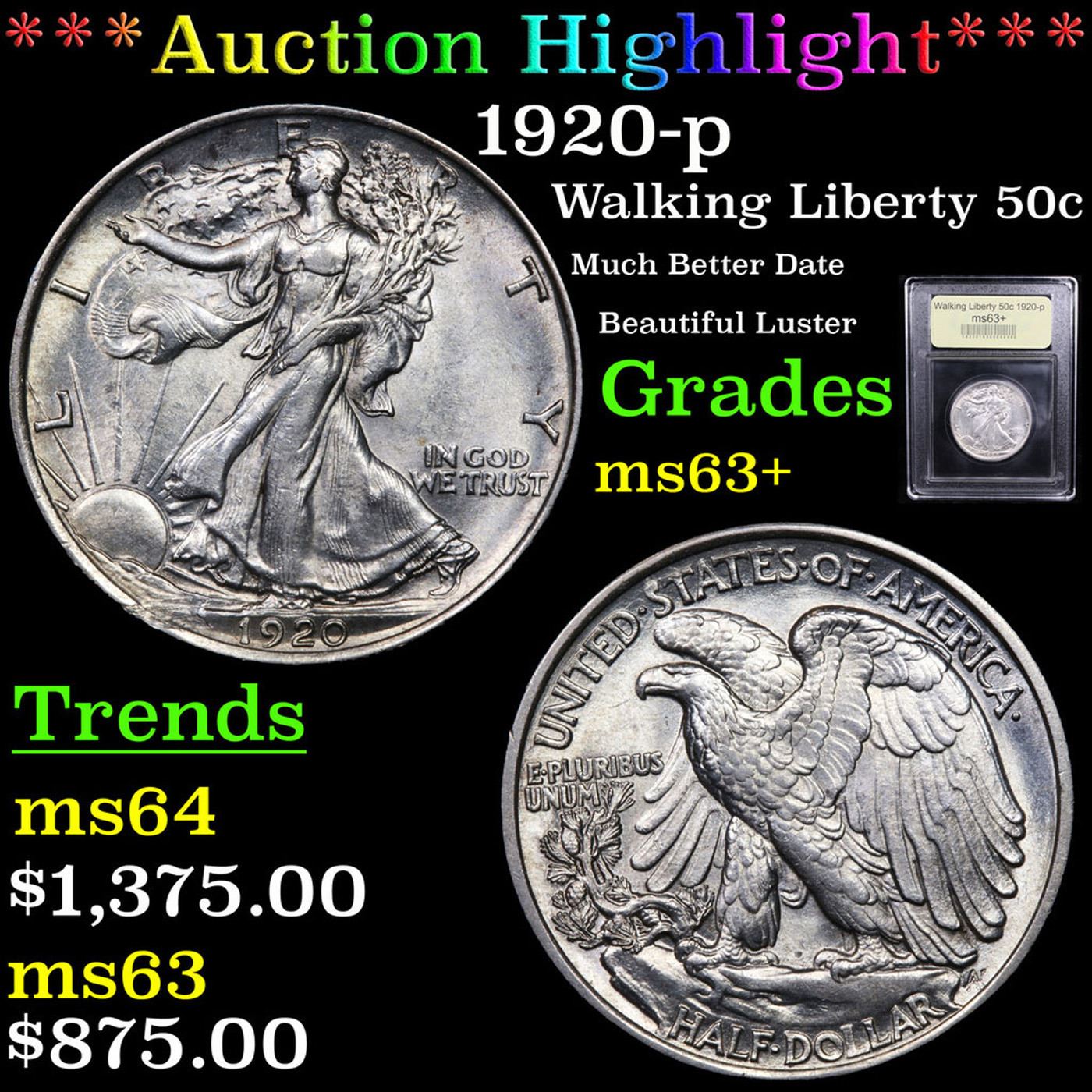 ***Auction Highlight*** 1920-p Walking Liberty Half Dollar 50c Graded Select+ Unc By USCG.