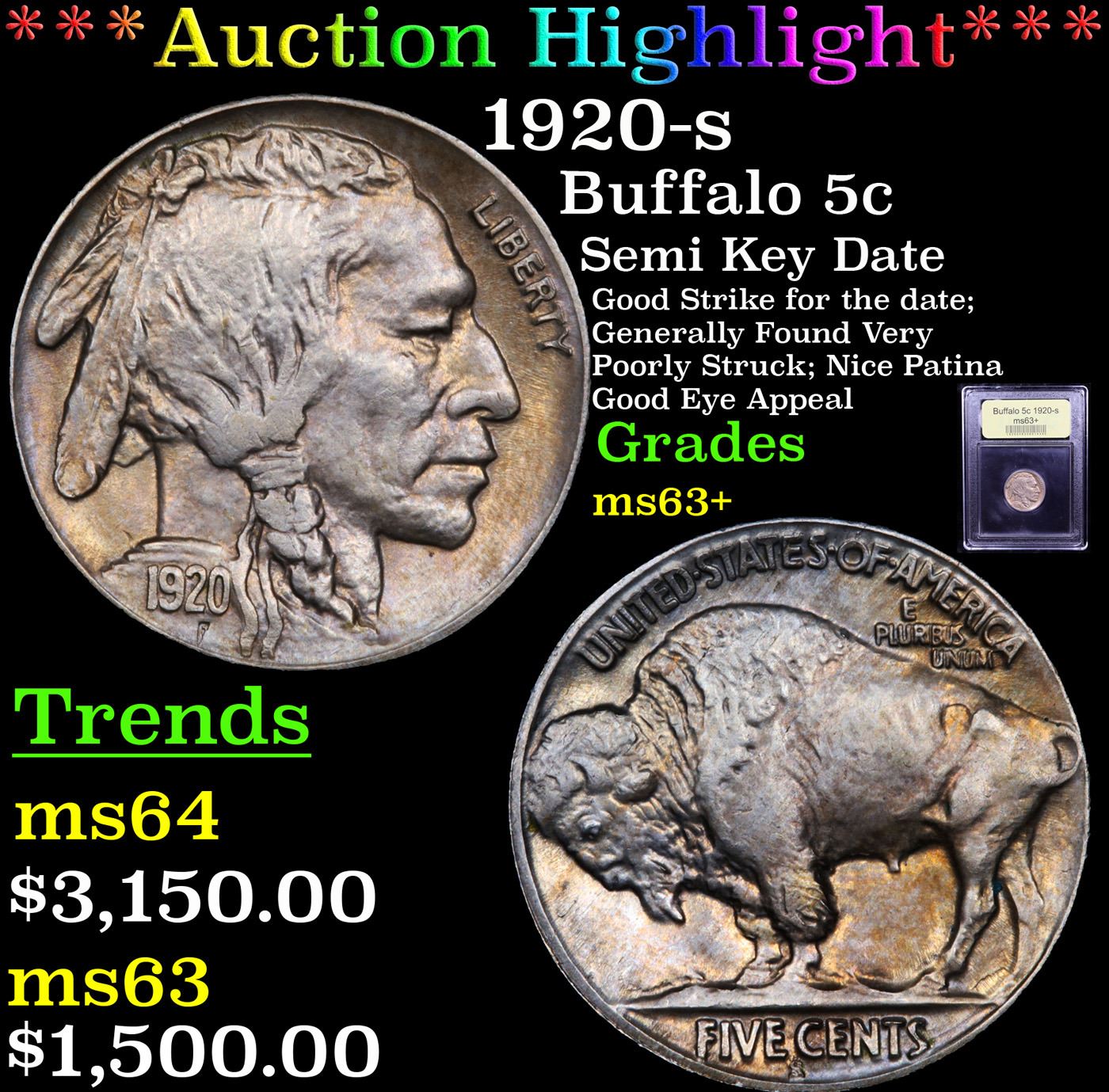 ***Auction Highlight*** 1920-s Buffalo Nickel 5c Graded Select+ Unc By USCG. A Corey's Pick, Bid to Win, Don't let it get Away Coin