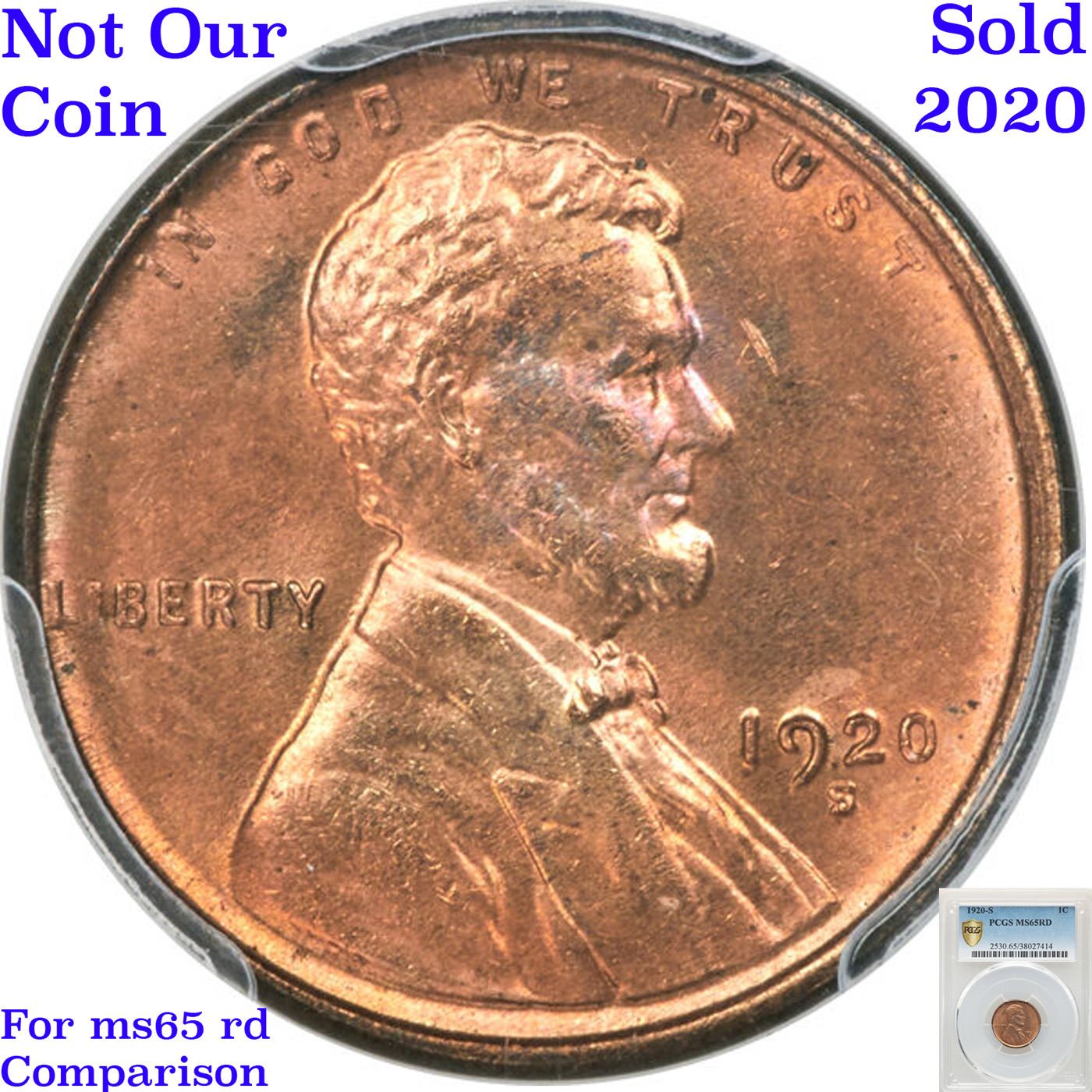 ***Auction Highlight*** 1920-s Lincoln Cent 1c Graded Choice+ Unc RD By USCG. Although readily available in lesser grades, Choice Uncirculated 1920-S cents are scarce and Gem examples are unarguably rare. This Plus-graded near-Gem representative is suitable for any advanced Lincoln cent collection. Gleaming red-orange surfaces show occasional carbon flecks that suggest originality, although it is the strike that sets this 1920-S apart from most examples. Even the high points of the portrait are sharp. A few tiny marks are the only grade-limiting factors. I have included 2 examples for your comparison, an ms64+ and an ms65. A Corey's Pick, Bid to Win, Don't let it get Away, you might not find its equal Coin. I give this coin my highest recommendation